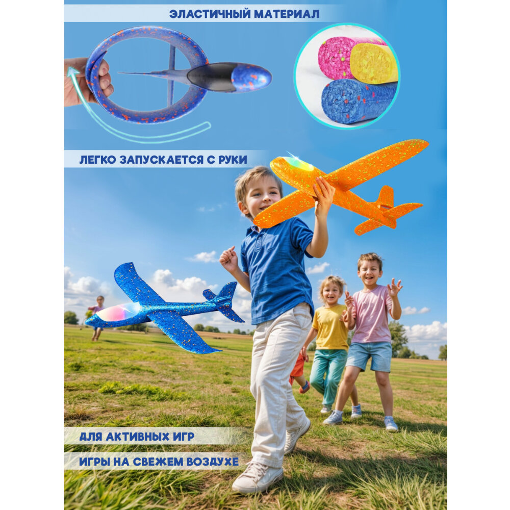 Отзывы на Детская игрушка пенопластовый самолет планер 46.5 см с LED подсветкой 10 ламп, 4 цвета, XYK121