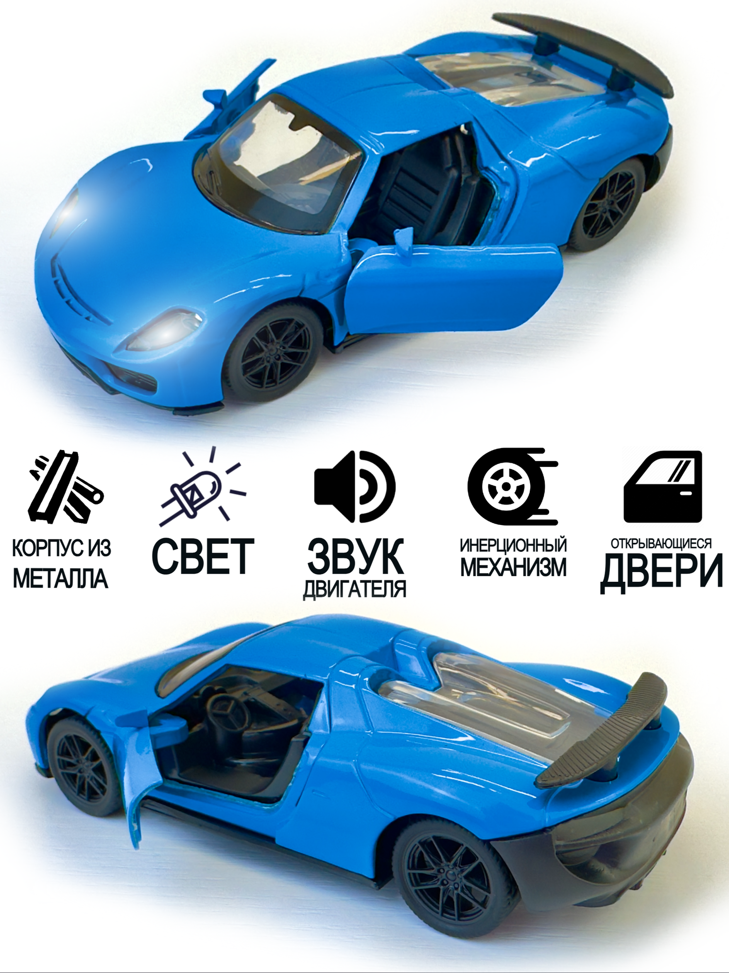 Отзывы на Машинка игрушка металлическая спортивная инерционная, 1:36, открываются двери, звук, свет, 12х5х3,5 см