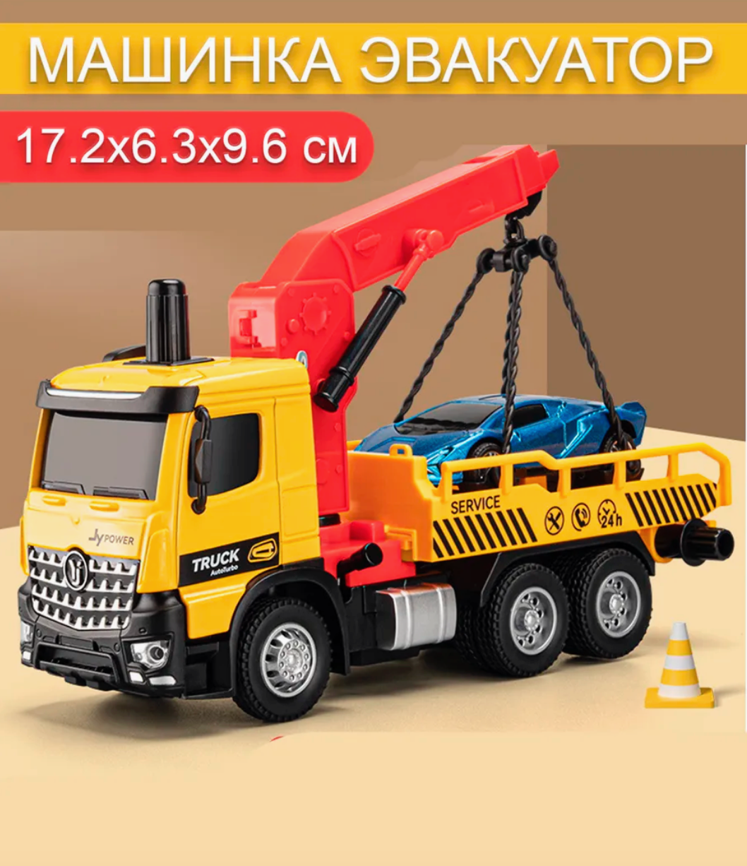 Машинка «Эвакуатор с подъемным краном» от бренда Jypower желто красный от MARI TOYS информация: