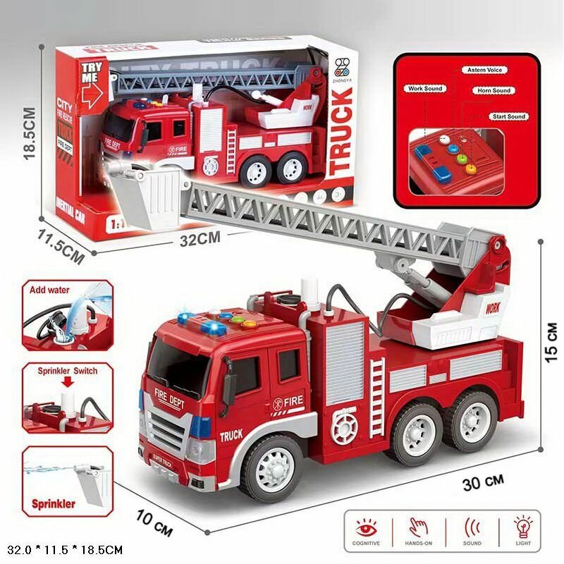 10 цен на Пожарная машина игрушка с водой инерционная, 1:16, мигалки светятся, реалистичные спецсигналы, выдвижная лестница