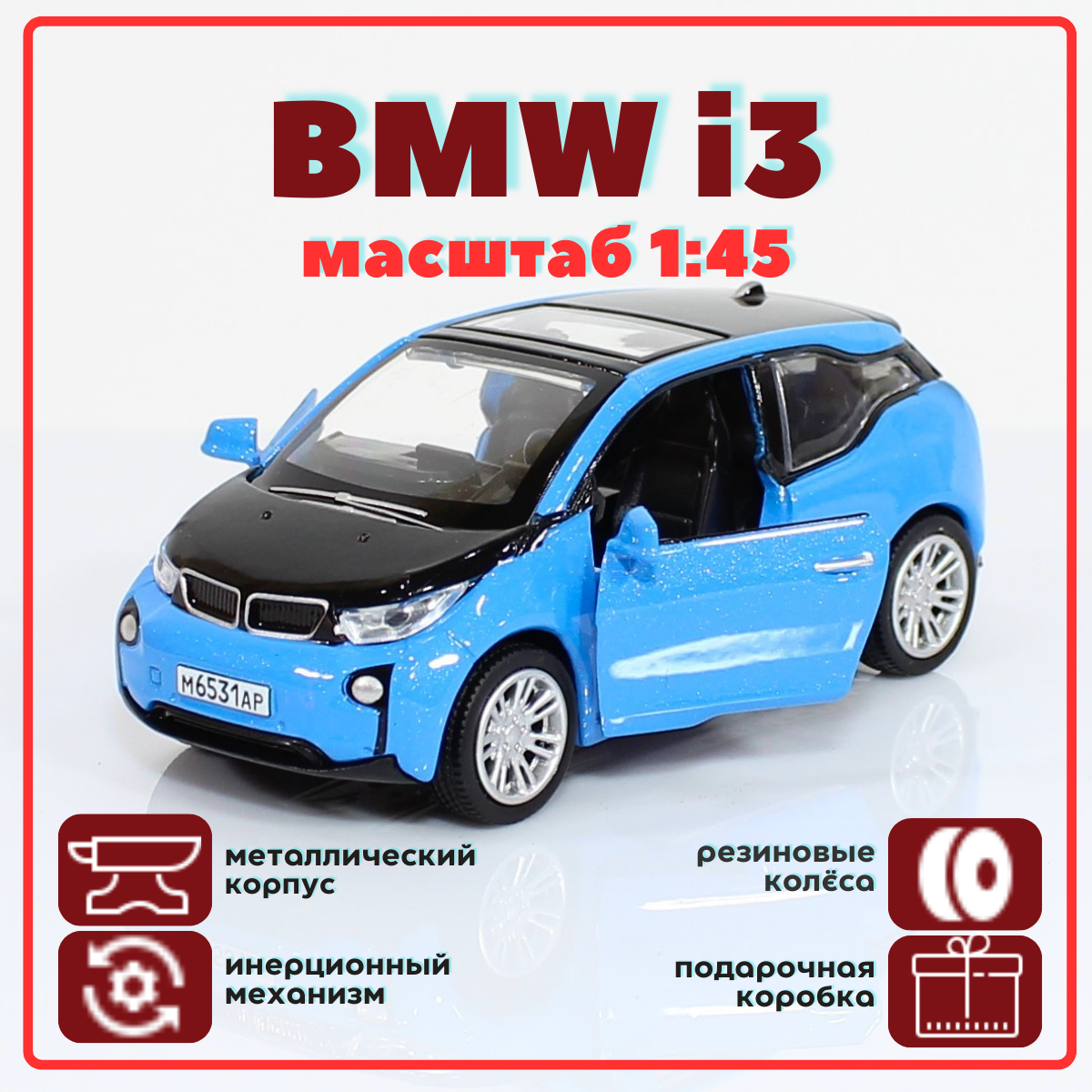 Металлическая машинка BMW i3 электрокар PLAY SMART голубая информация: