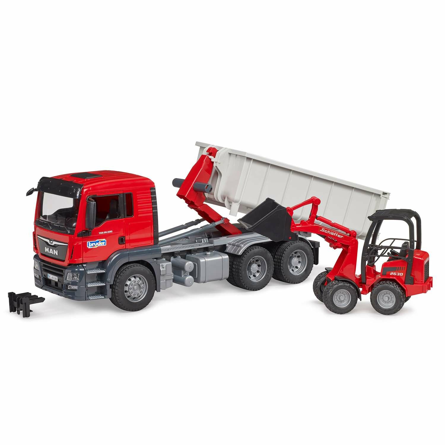 Машинка-самосвал Bruder MAN с погрузчиком 03767, красный/серый информация: