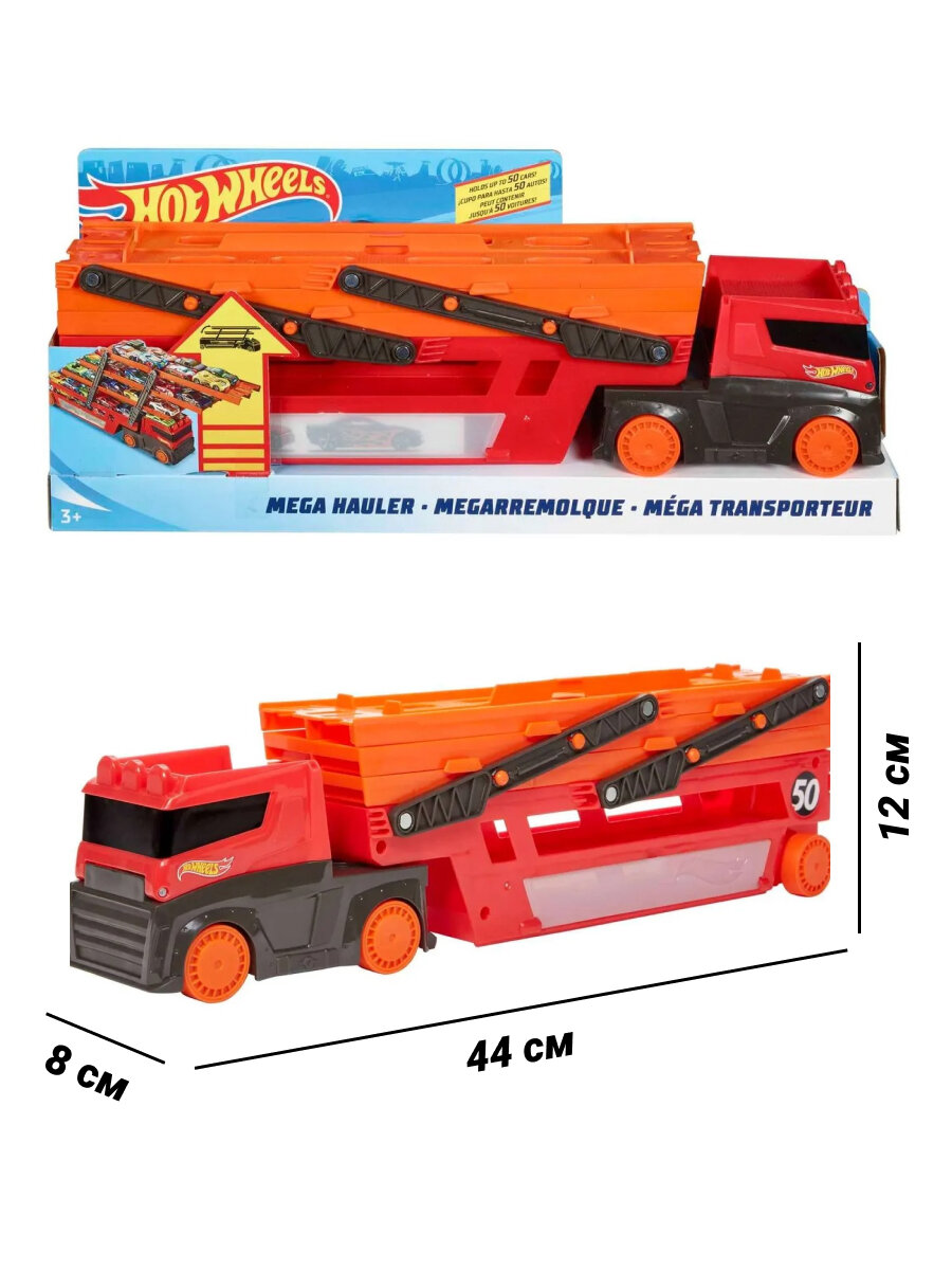 Машинка Hot Wheels GWT37 мега грузовик автовоз с хранением для машинок Хот Вилс информация: