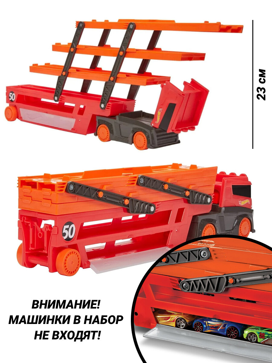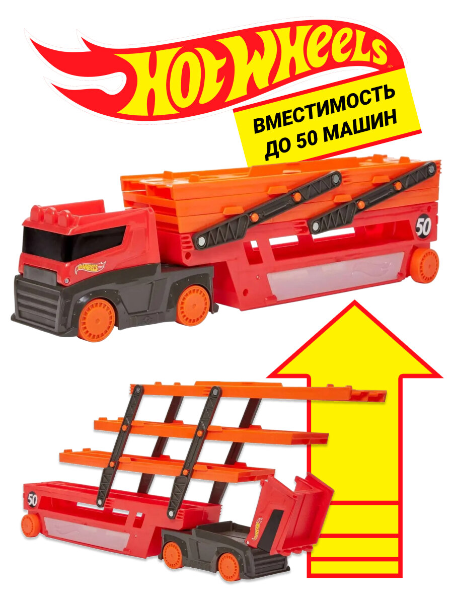 10 цен на Машинка Hot Wheels GWT37 мега грузовик автовоз с хранением для машинок Хот Вилс