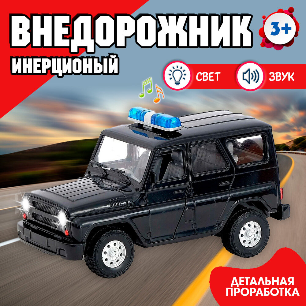 Игрушечный автомобиль "Джип черный" инерционный свет звук PLAY SMART 9076-A информация: