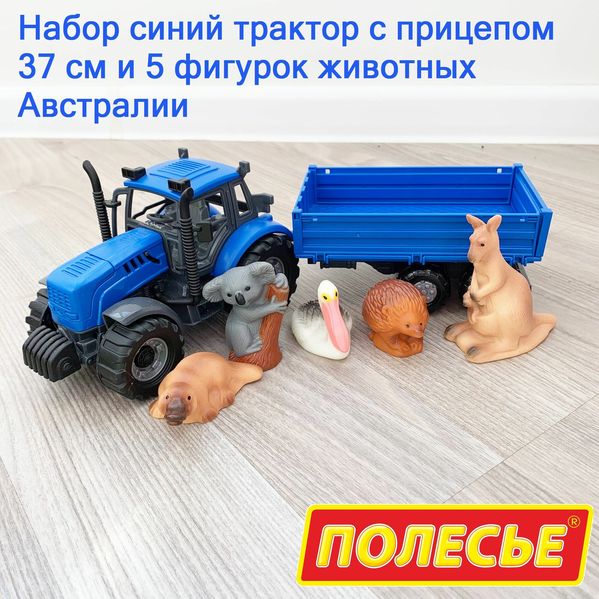 Отзывы на Набор инерционный трактор с прицепом и 5 фигурок животных Австралии / Полесье (синий)