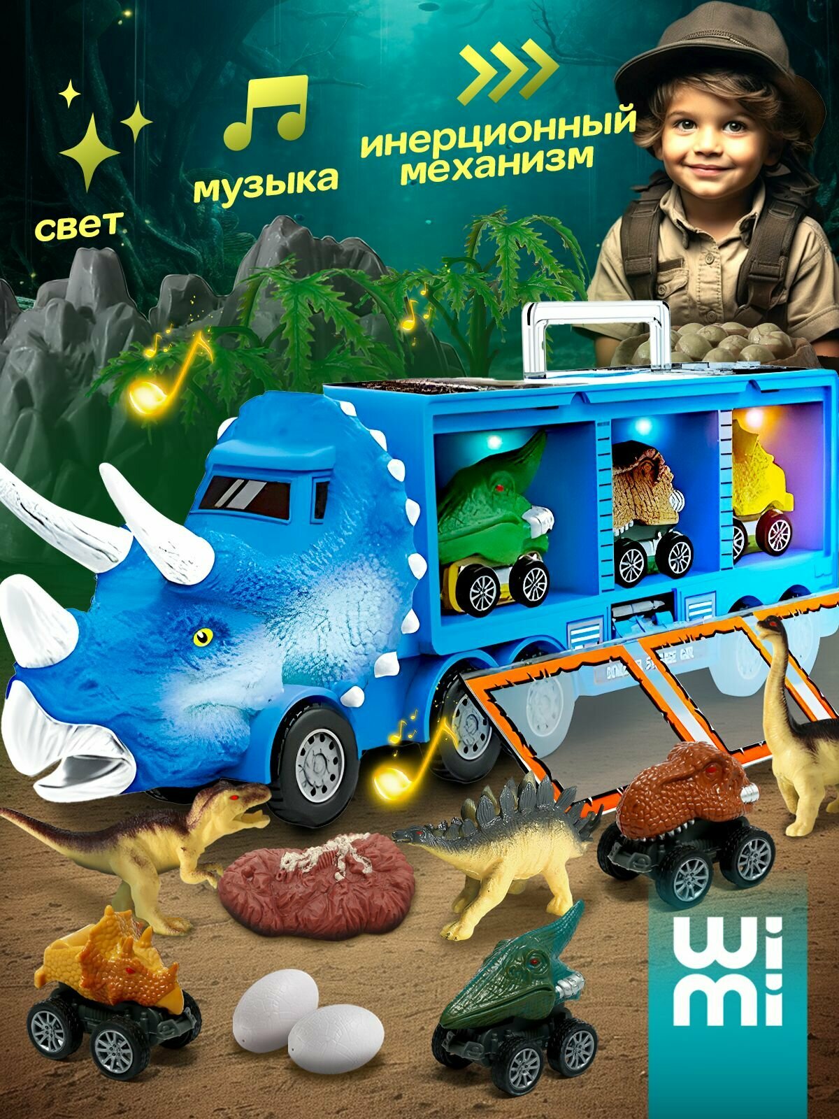 Большой автовоз с машинками WiMi, динозавр, инерционный грузовик с фигурками информация: