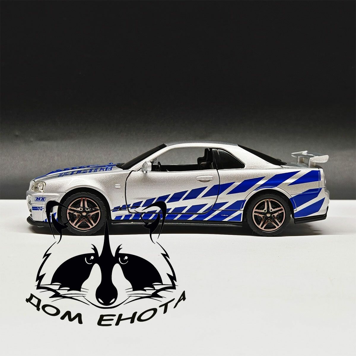 Отзывы на Машинка Nissan Skyline GTR R34. Металлическая модель автомобиля Ниссан Скайлайн Форсаж Р34 серебро 14см. Инерционная игрушка машина 1:32