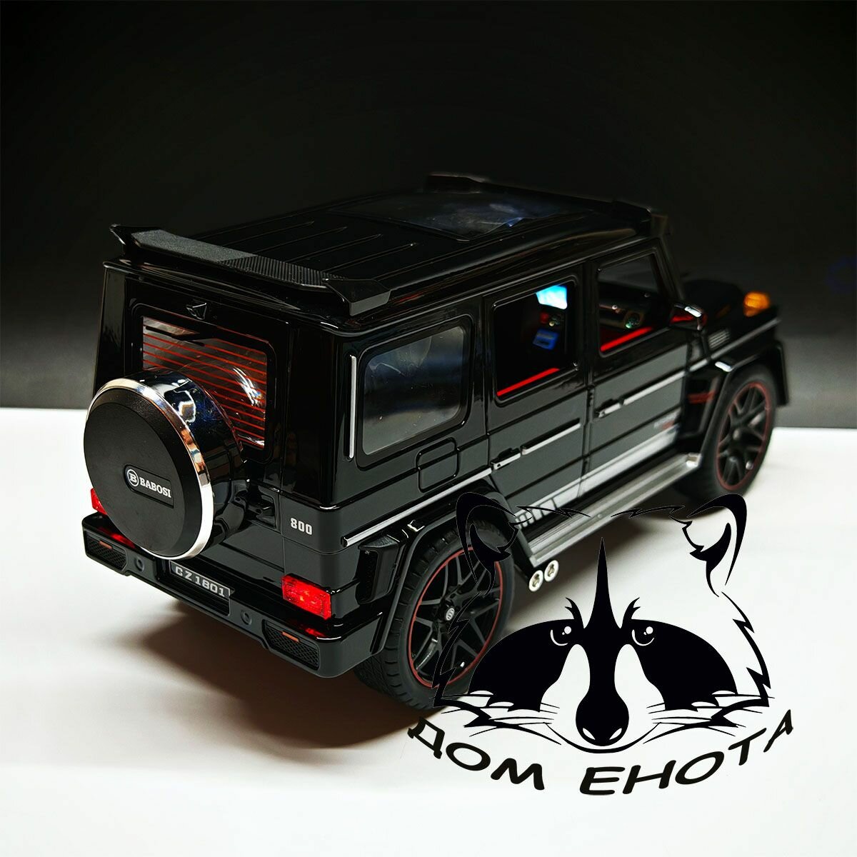 10 цен на Машинка Mercedes G. Металлическая модель автомобиля Мерседес Гелик с дымом 28см черный. Инерционная игрушка 1:18