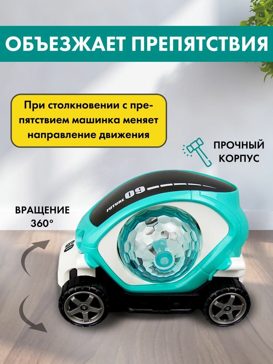 Музыкальная игрушка машинка диско шар, вращение на 360 градусов, свет и музыка, объезжает препятствия информация: