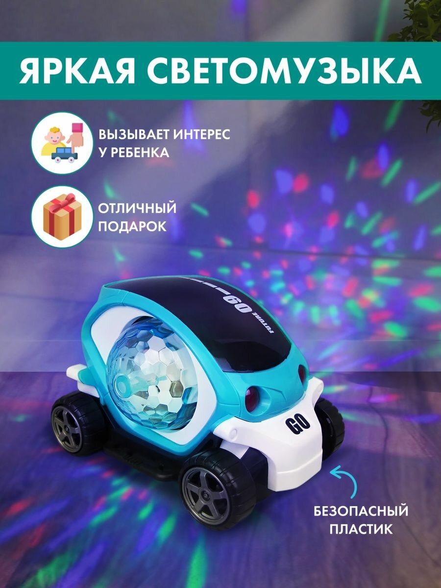 10 цен на Музыкальная игрушка машинка диско шар, вращение на 360 градусов, свет и музыка, объезжает препятствия
