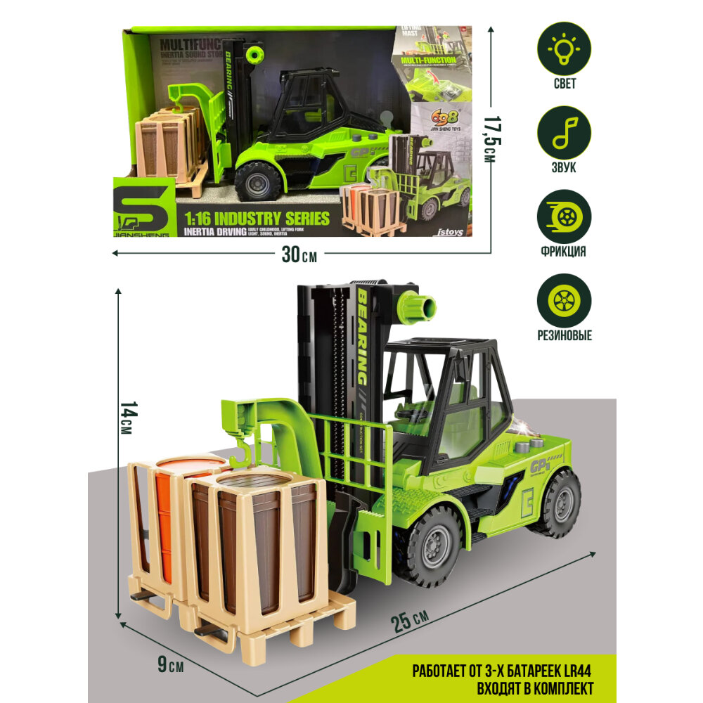 10 цен на Игрушка машинка инерционная Погрузчик 26 см на батарейках, масштаб 1:16, со светом и звуком, подвижные вилы