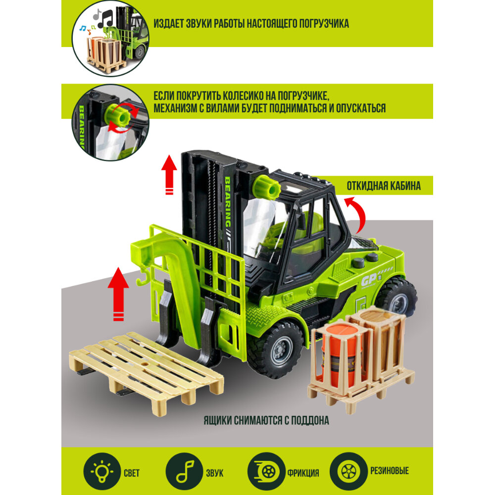 Игрушка машинка инерционная Погрузчик 26 см на батарейках, масштаб 1:16, со светом и звуком, подвижные вилы информация: