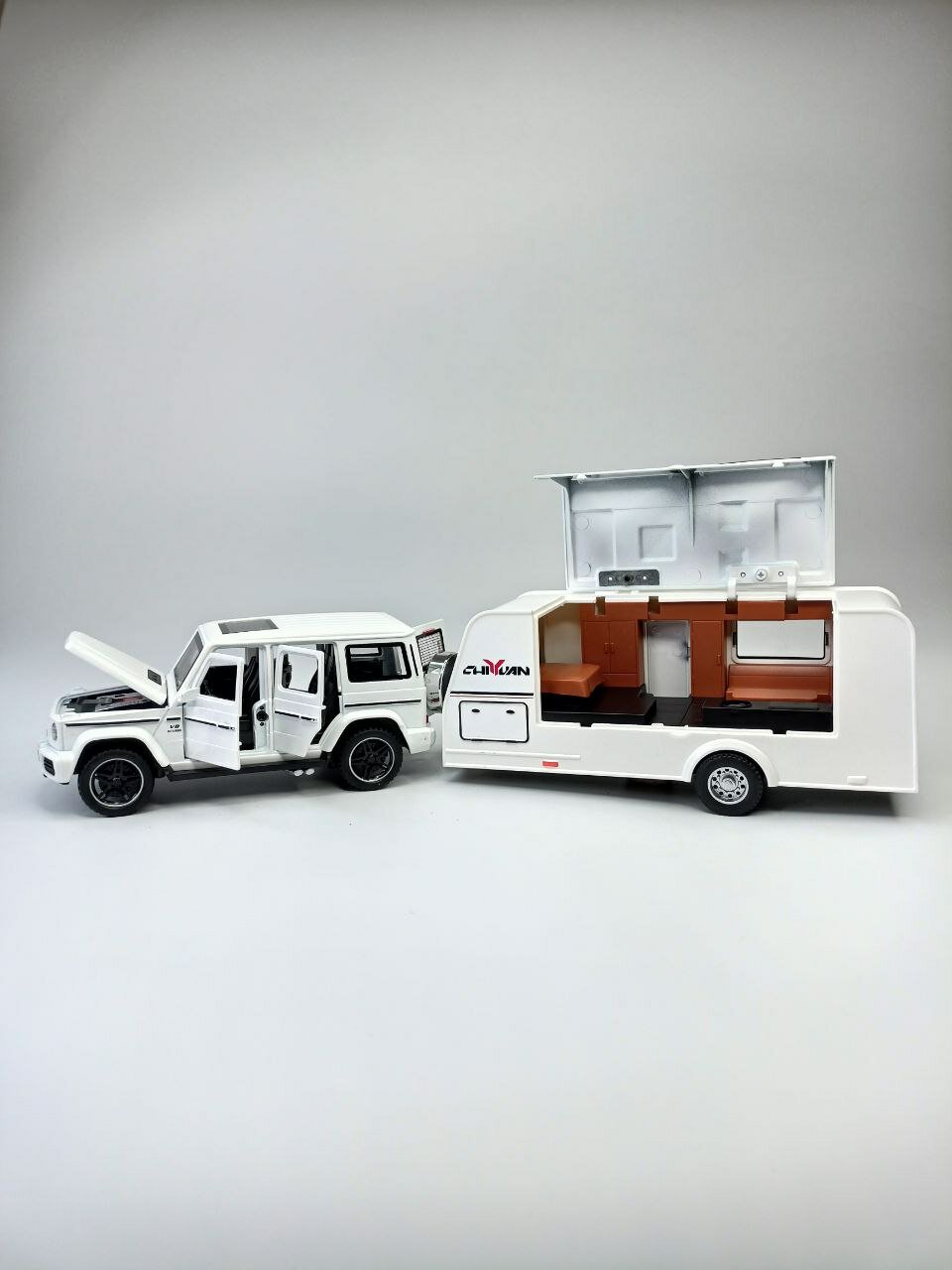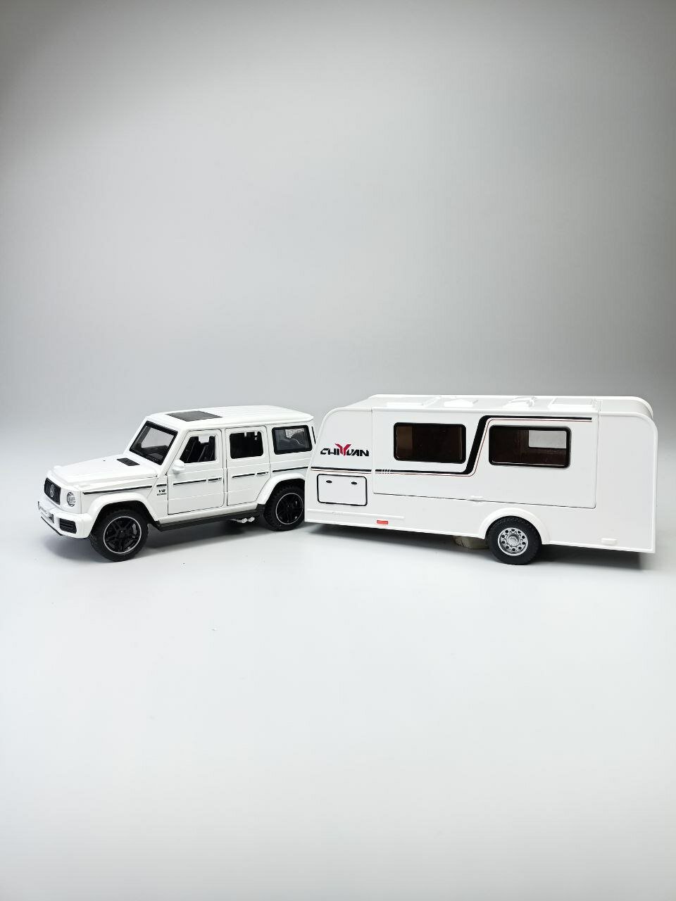 Отзывы на Модель автомобиля Мерседес Гелендваген с трейлером коллекционная металлическая игрушка белый