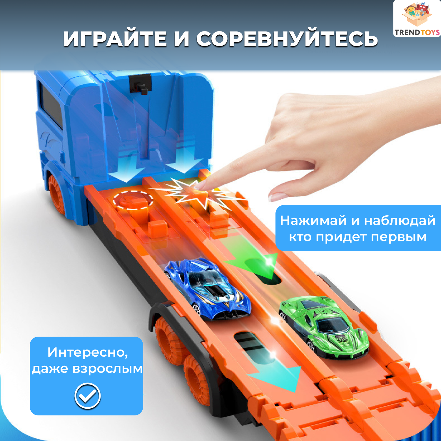 Автовоз с машинками TrendToys с катапультой и гоночной трассой, игровой набор для мальчика информация: