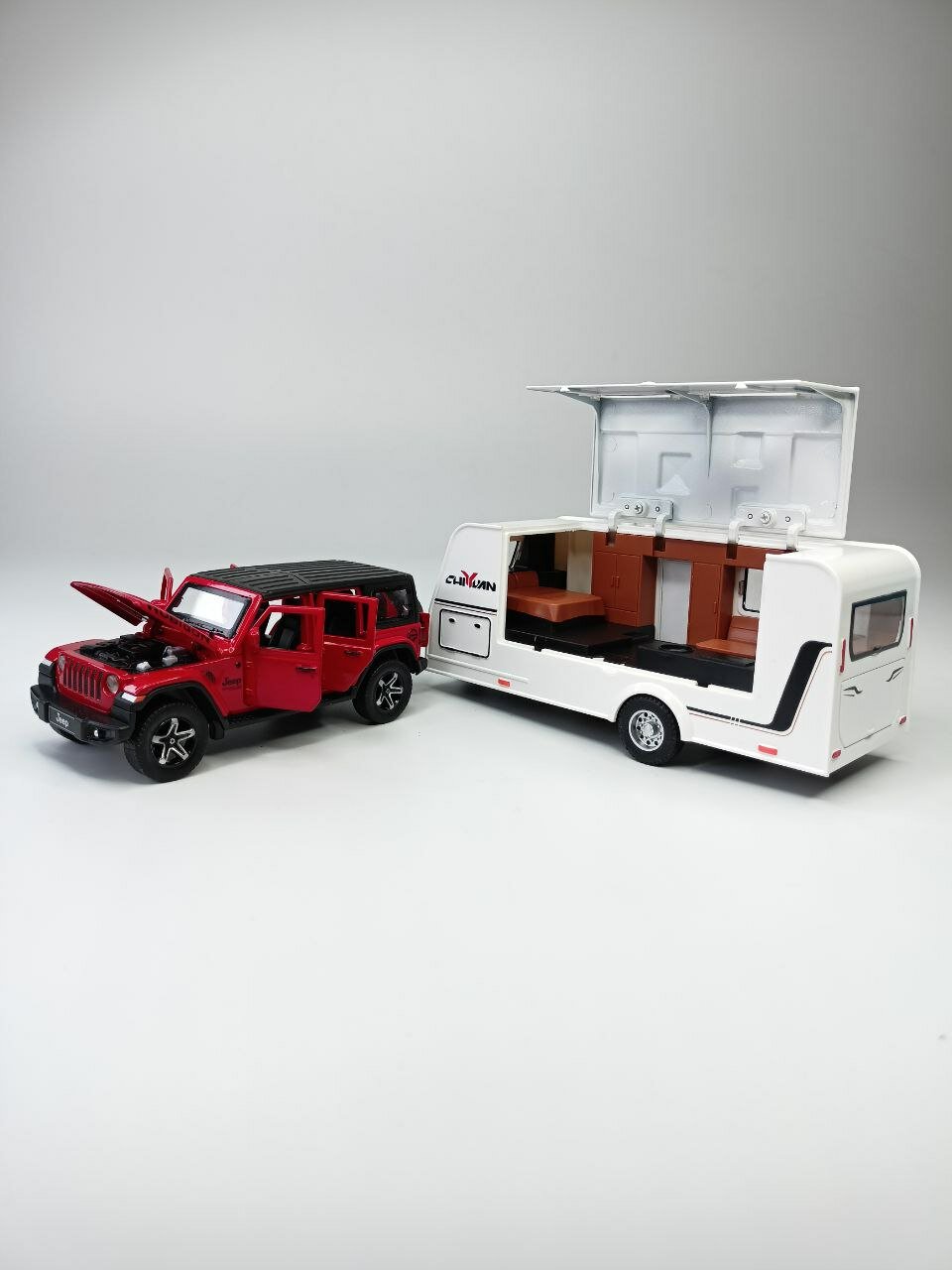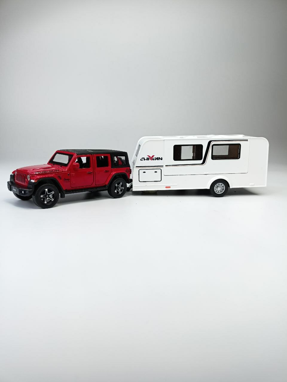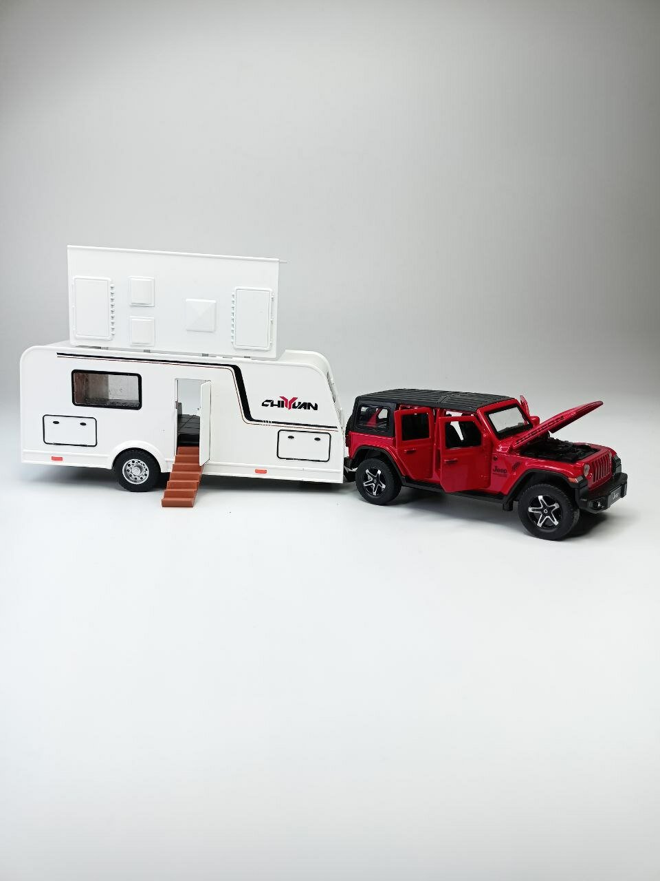 Отзывы на Модель автомобиля Джип Рубикон с трейлером коллекционная металлическая игрушка красный