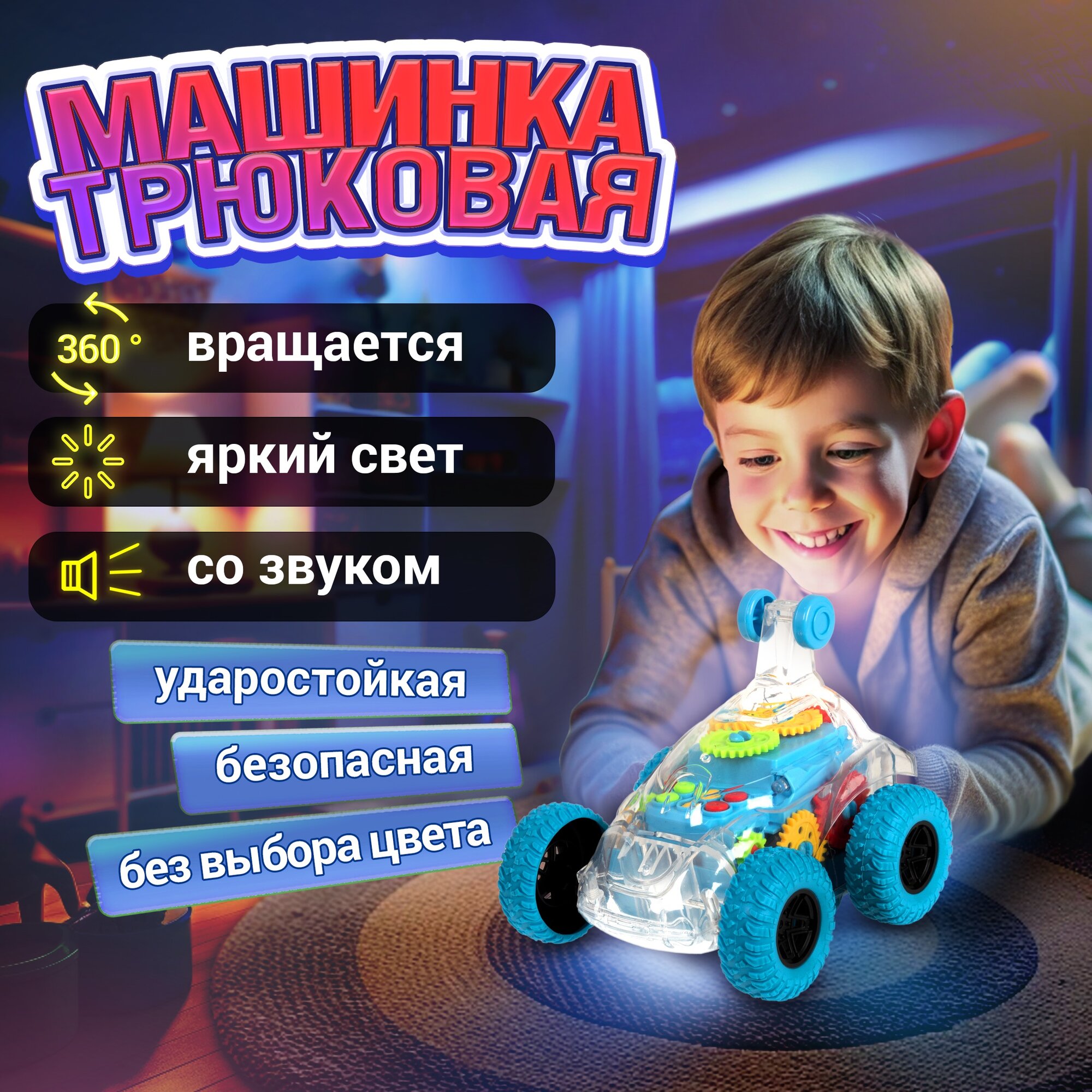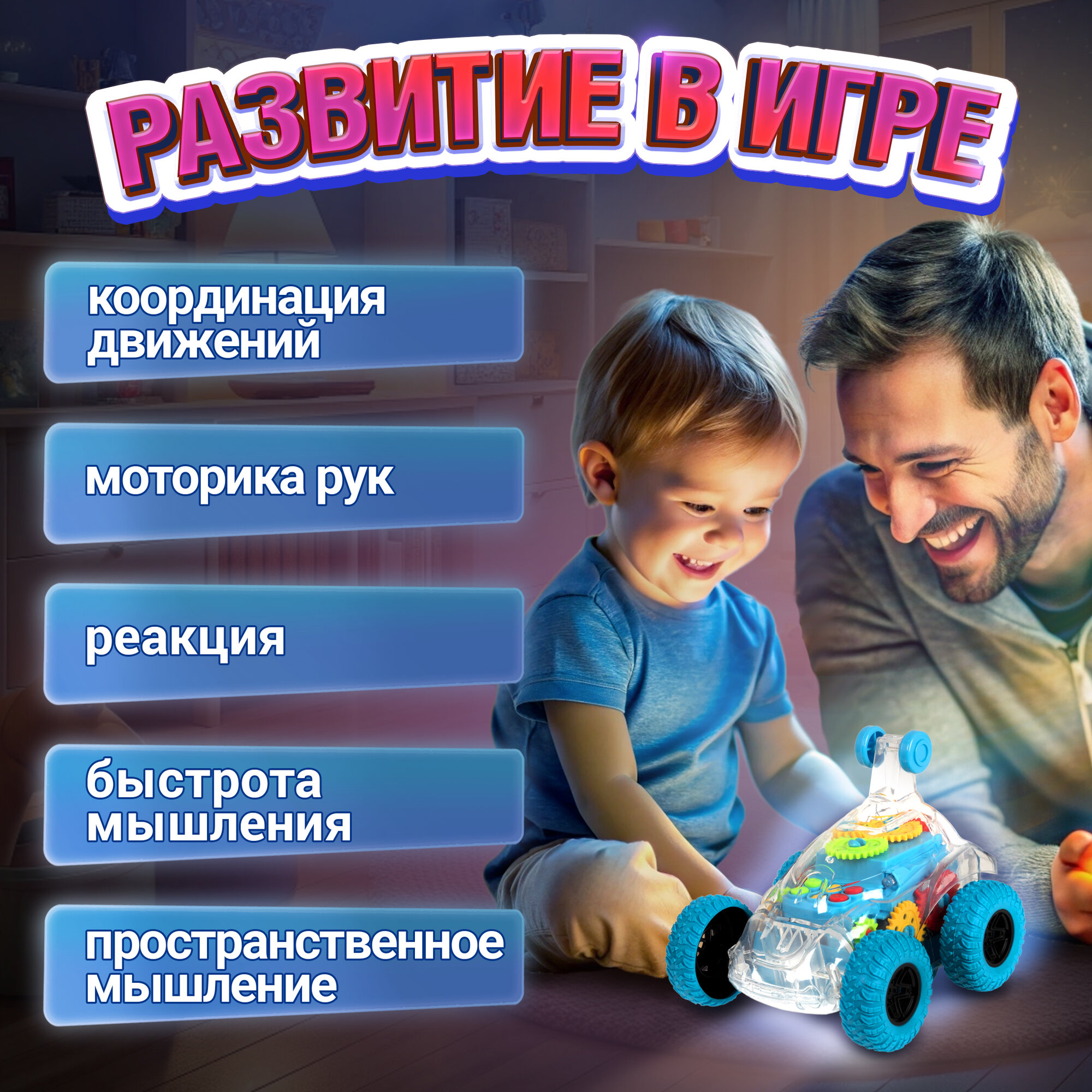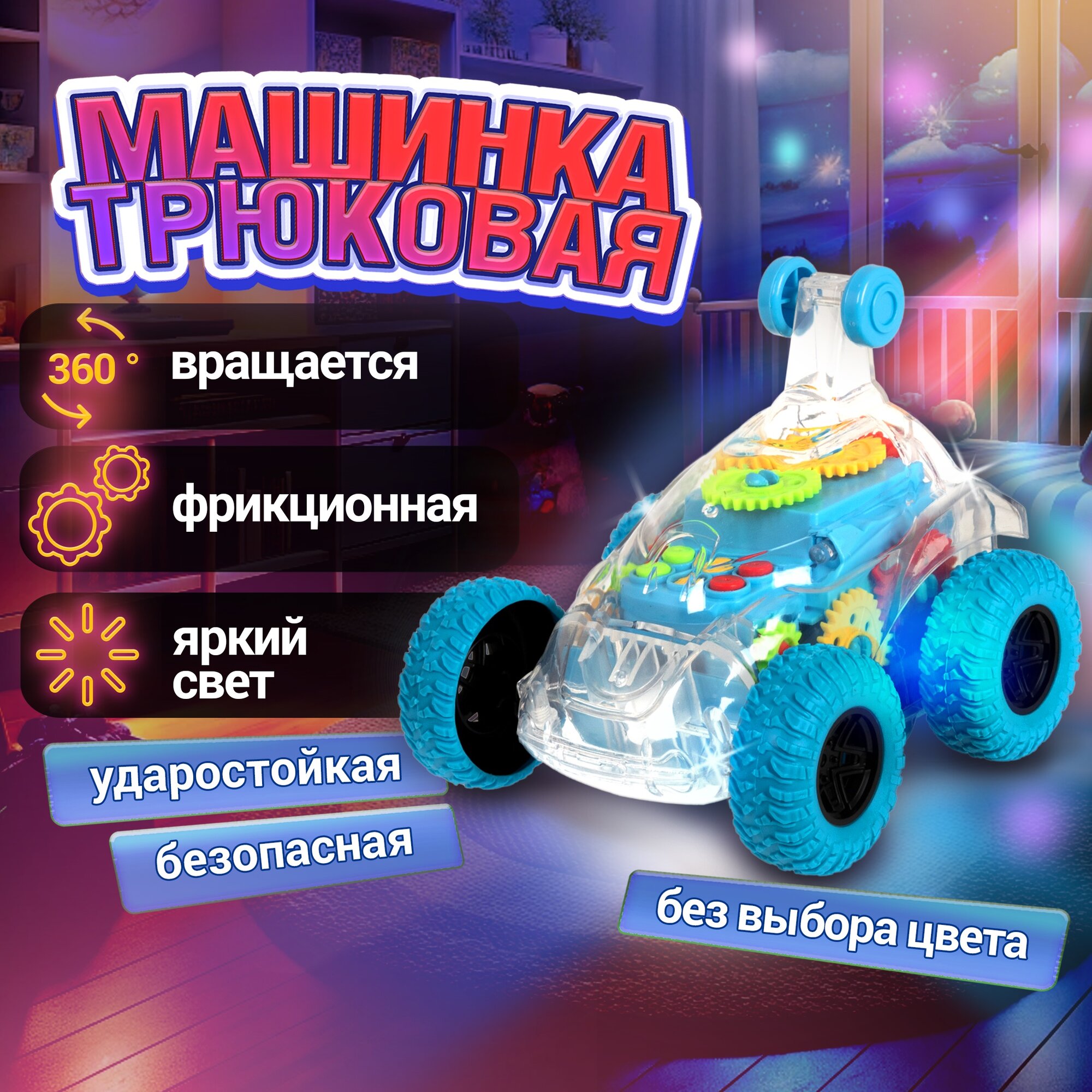 Отзывы на Машинка 1TOY Движок, трюковая, прозрачная с шестеренками, со светом и звуком, 1 шт.