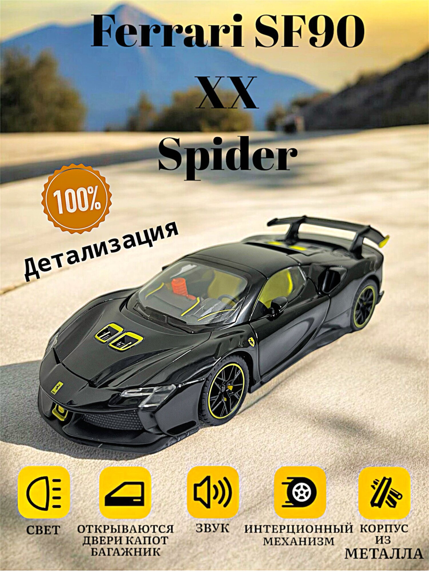 Коллекционная масштабная модель Ferrari SF90 XX Spider 1:24 (металл, свет, звук) информация: