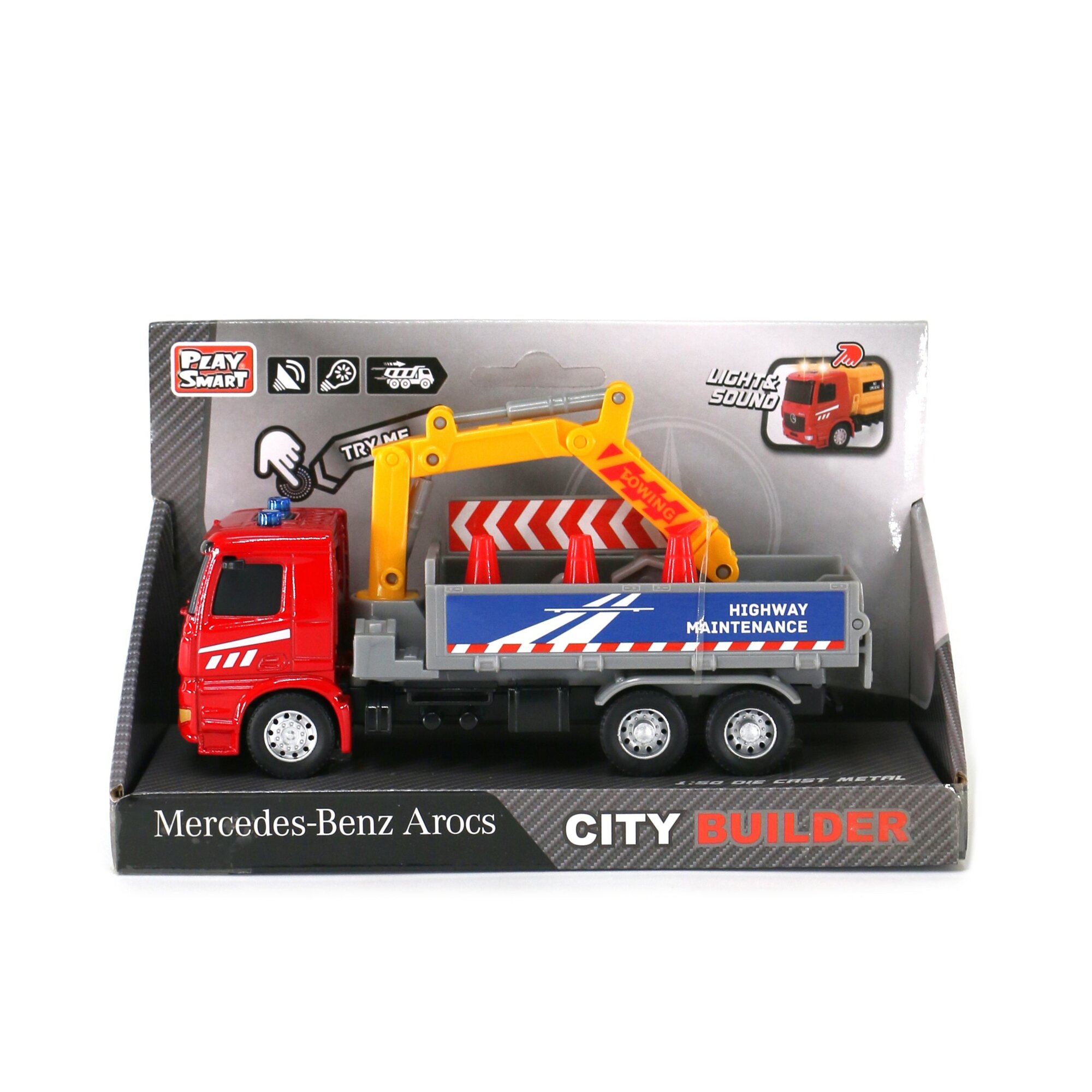 Автомобиль игрушечный "Автокран Mercedes-Benz" (красный) инерционный свет звук PLAY SMART 6728