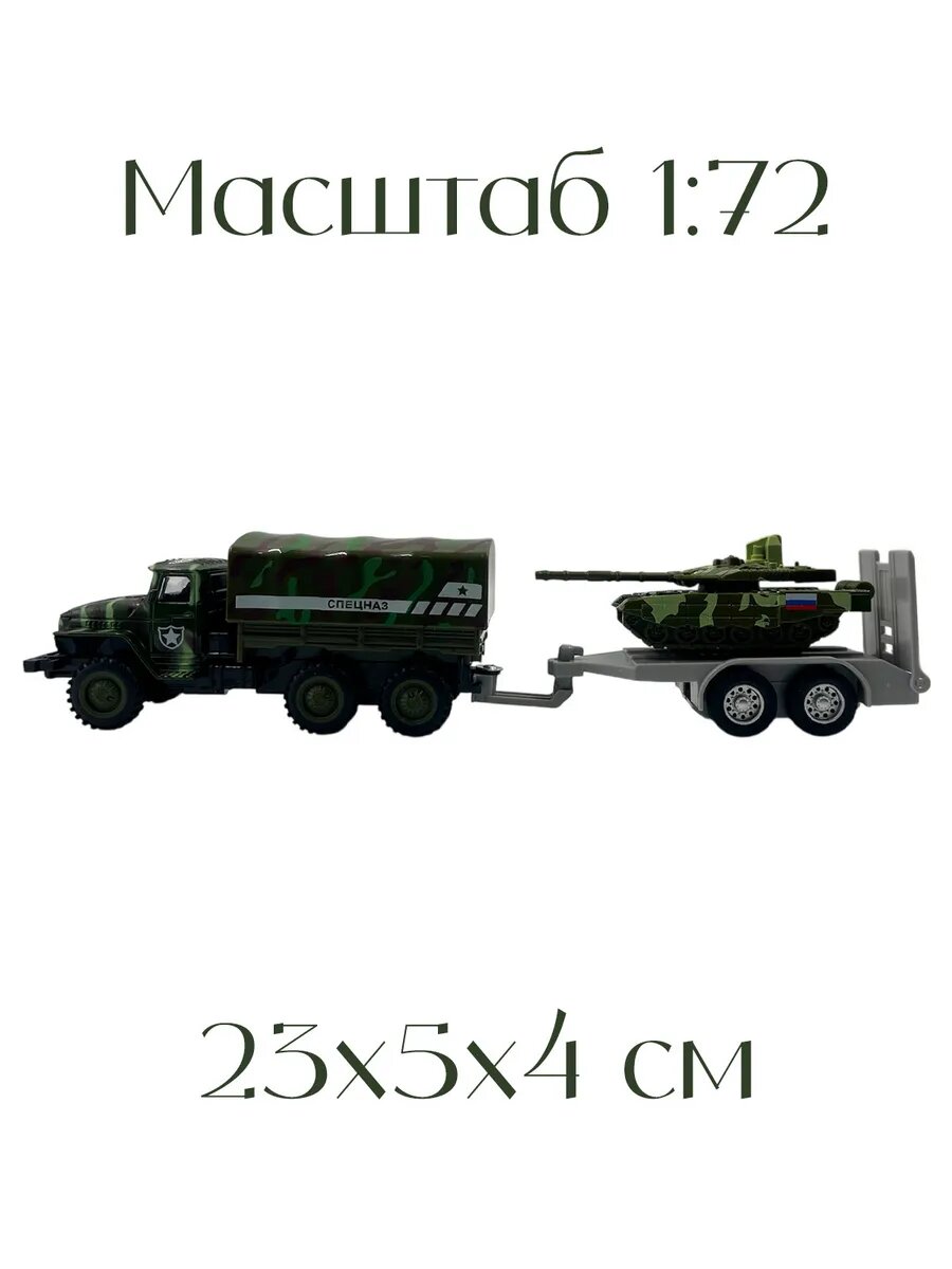 10 цен на Модель автомобиля металлическая "УРАЛ-4320. Автовоз с танком", масштаб 1:72