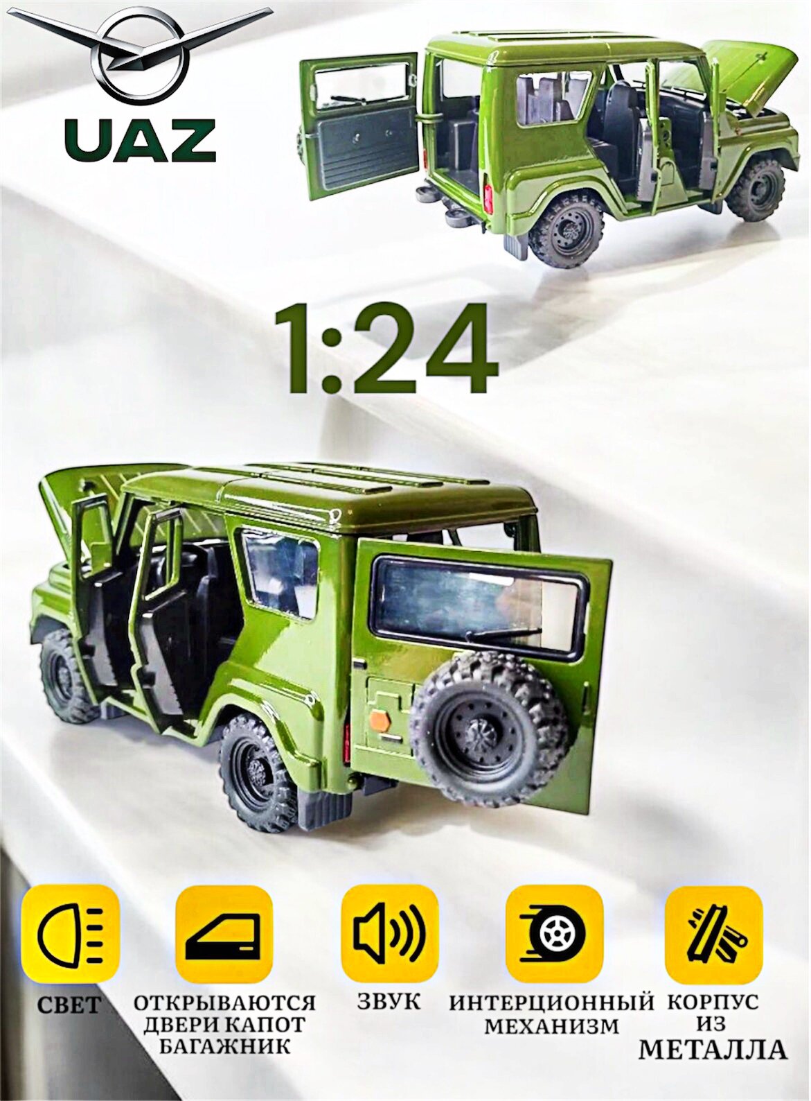 10 цен на Коллекционная масштабная модель УАЗ-469 1:24 (металл, свет, звук)
