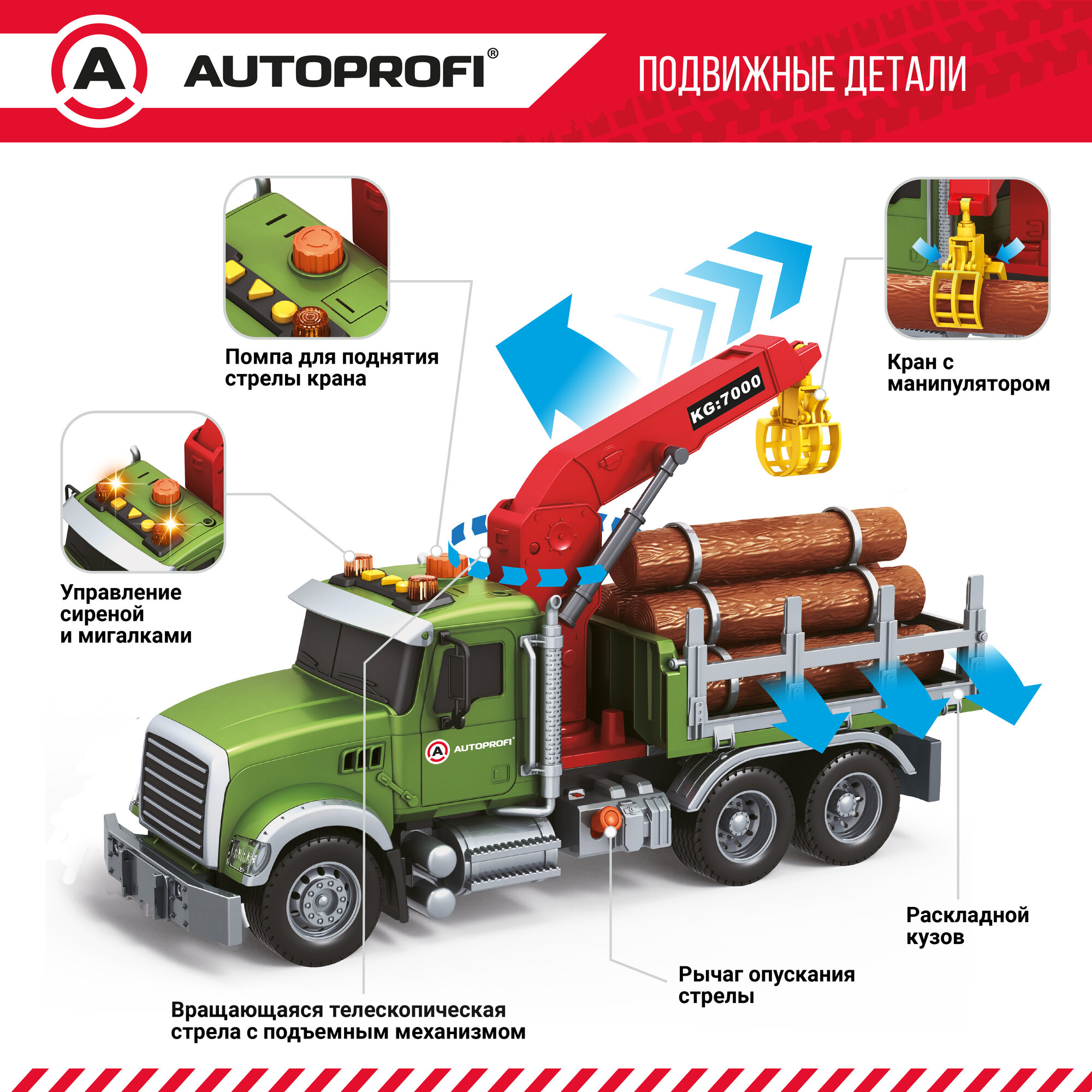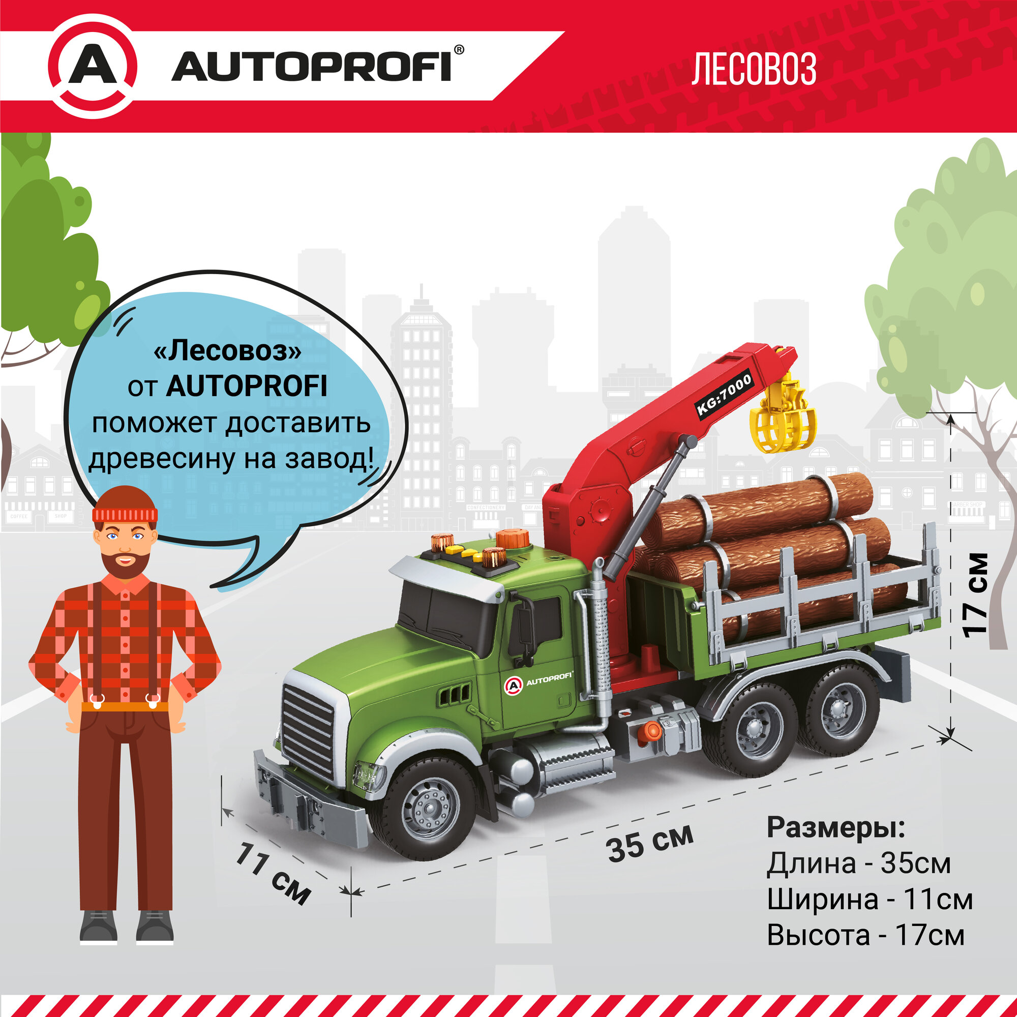 Машинка "Лесовоз" 35см, инерционная, звуковые и световые эффекты, CA-035/TIMB, игрушки для мальчика информация: