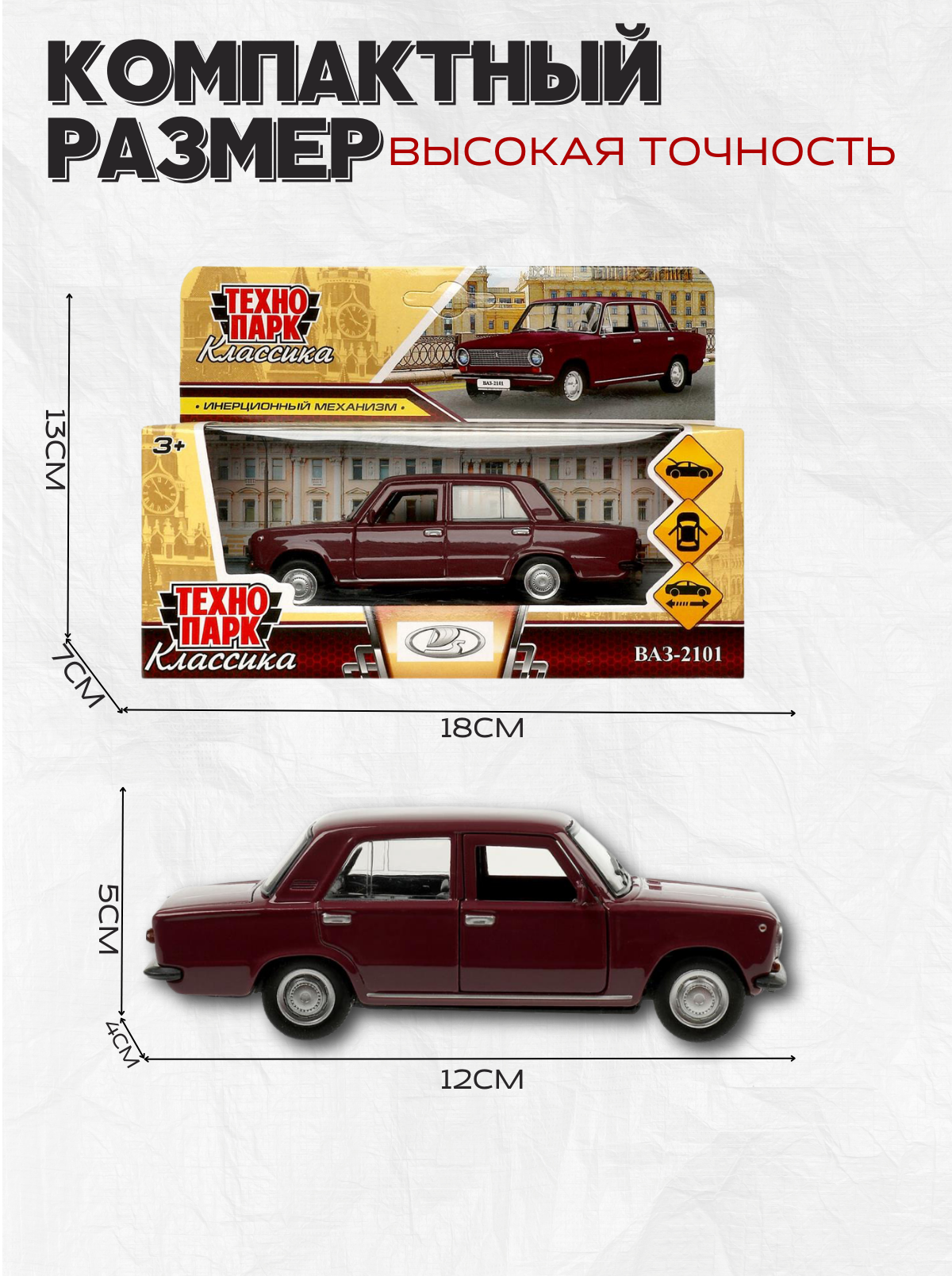 Металлическая модель «ВАЗ-2101» ТМ «Технопарк» инерционный механизм , фиолетовая информация: