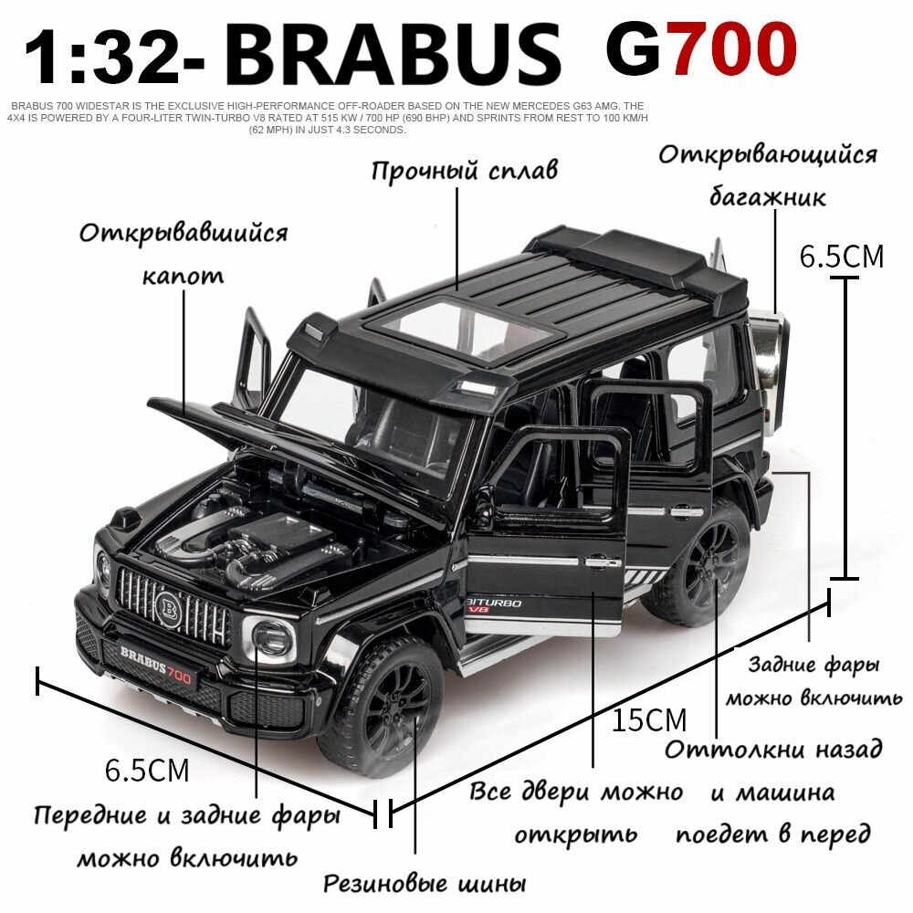 Коллекционная машинка 1:32 Brabus G700 черный, открывающиеся двери, капот, багажник, свет фар информация: