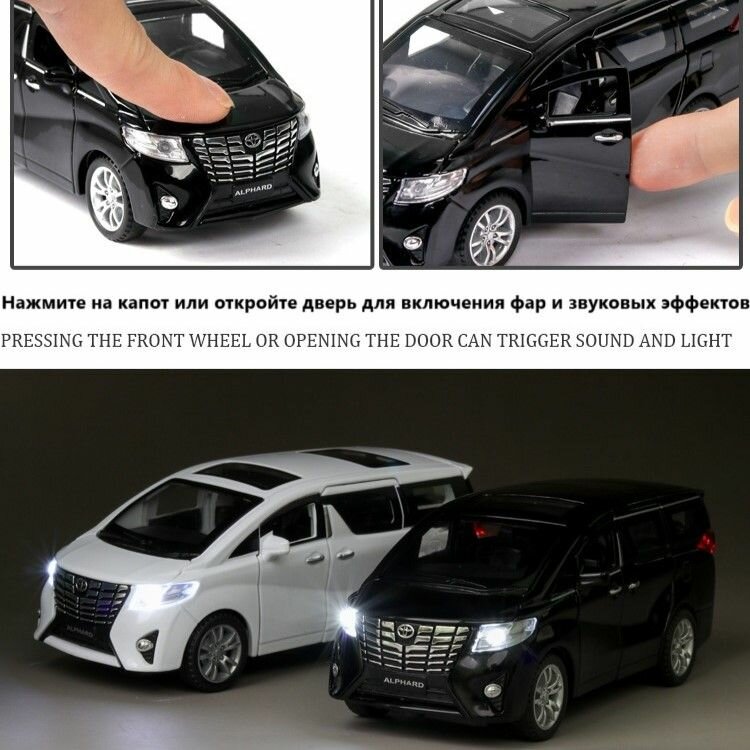 Отзывы на Коллекционная машинка Toyota Alphard 1/32, черная, открывающиеся двери, капот, багажник, свет фар