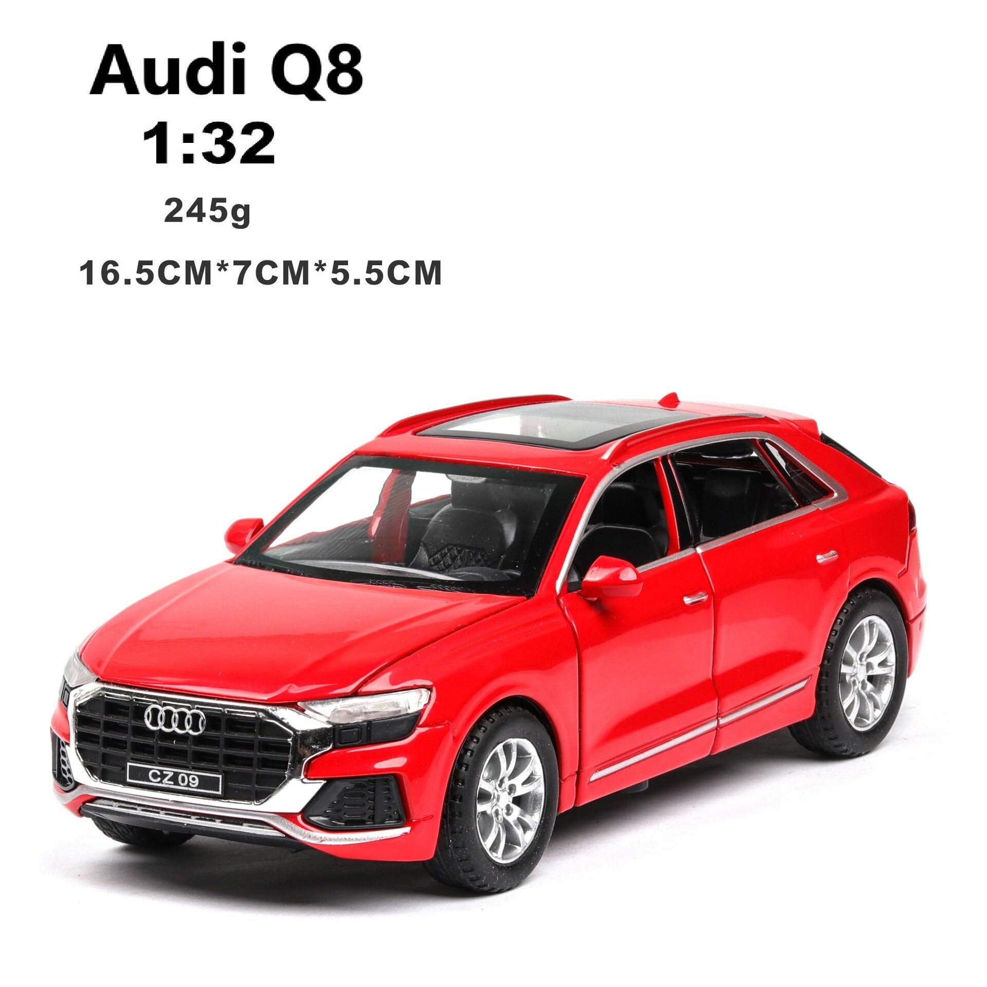 Коллекционная металлическая машинка 1/32 Audi Q8, открывающиеся двери, капот и багажник информация: