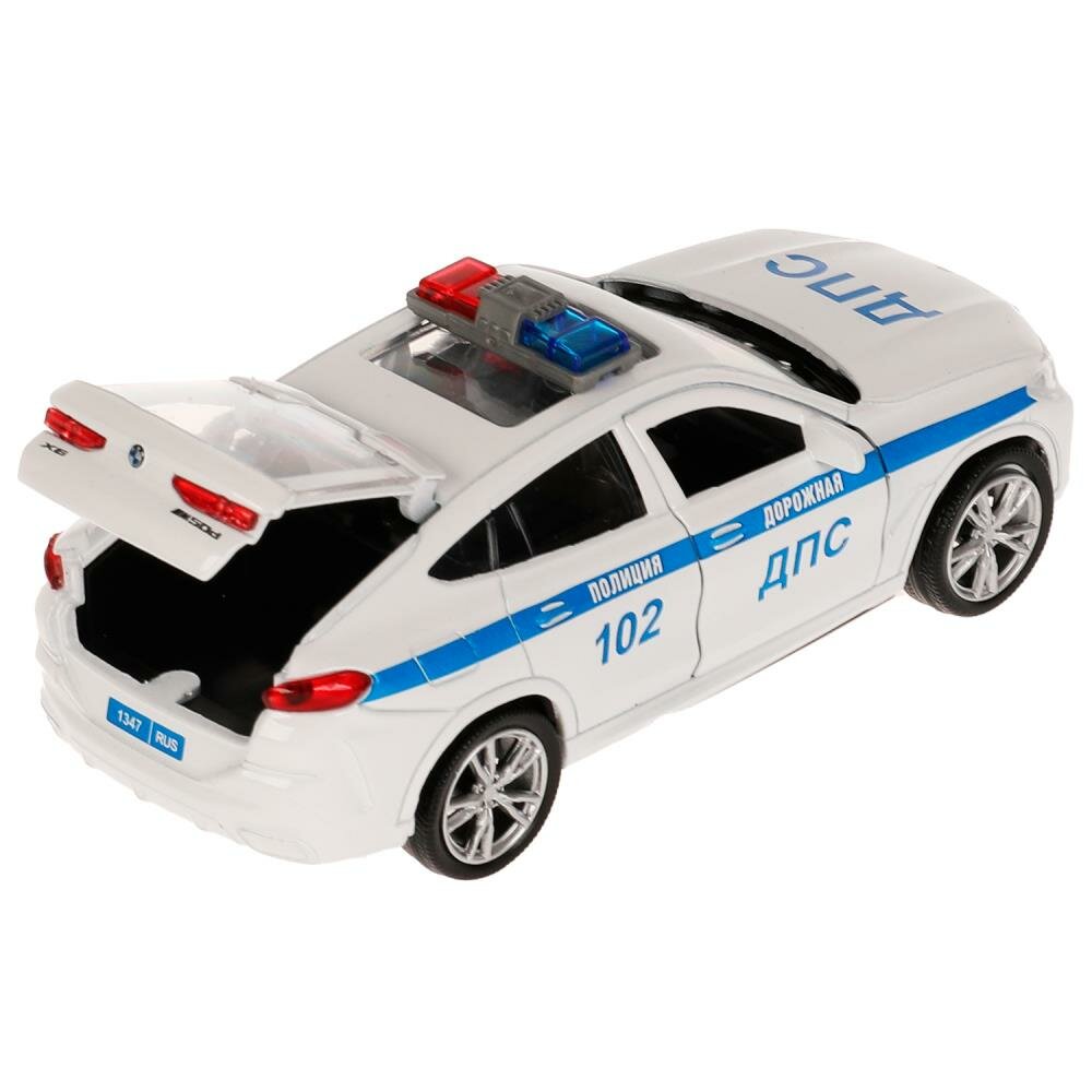 Машинка Технопарк модель BMW X6 Полиция ДПС 12 см, белая, откр. двери. информация: