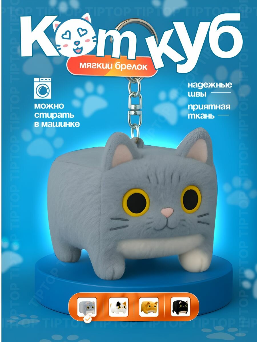 Отзывы на Мягкая игрушка брелок котокуб кот куб квадратный подушка серый 12см