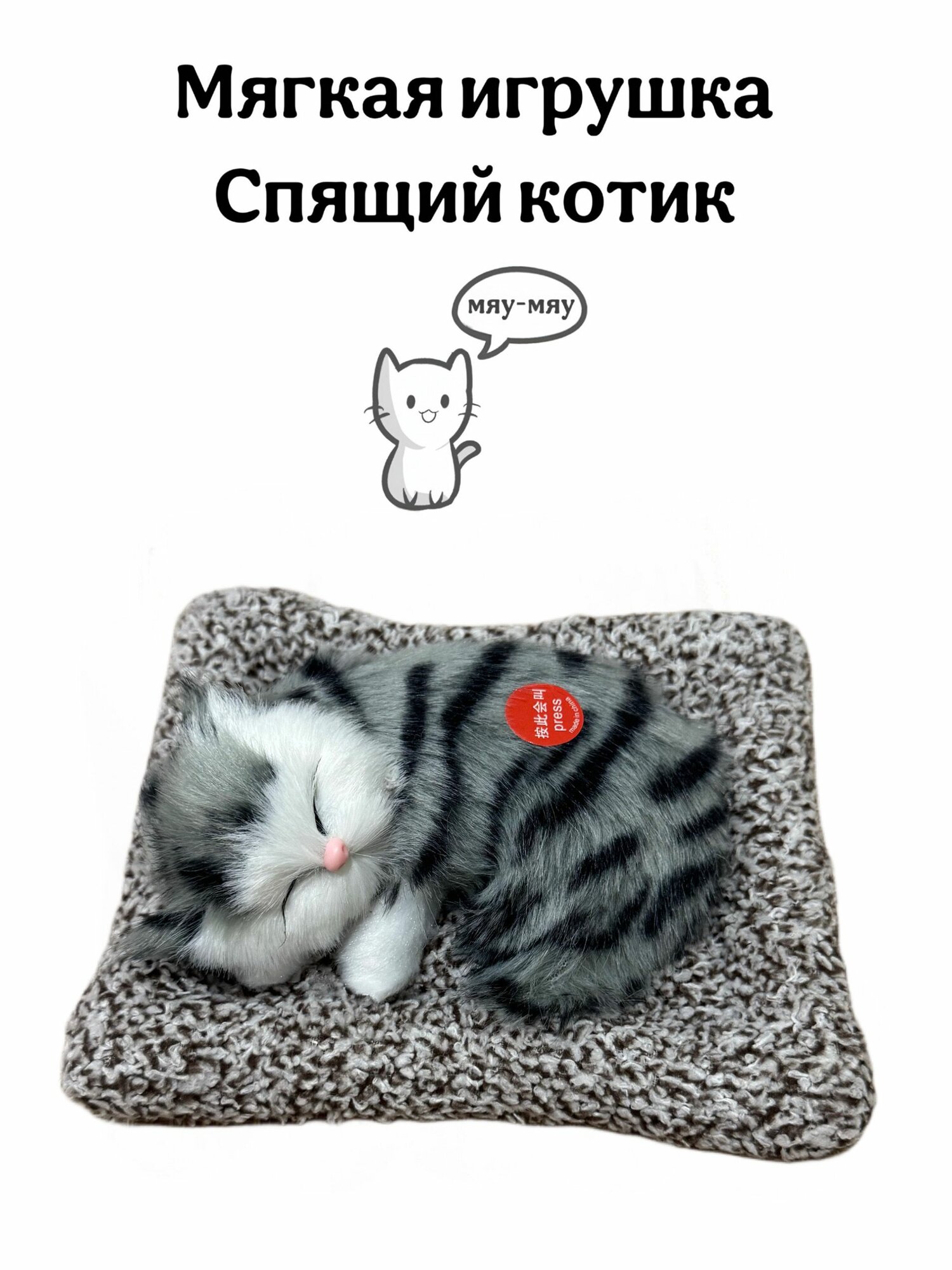 Мягкая игрушка "Спящий котик на коврике" , искусственный мех, со звуком информация: