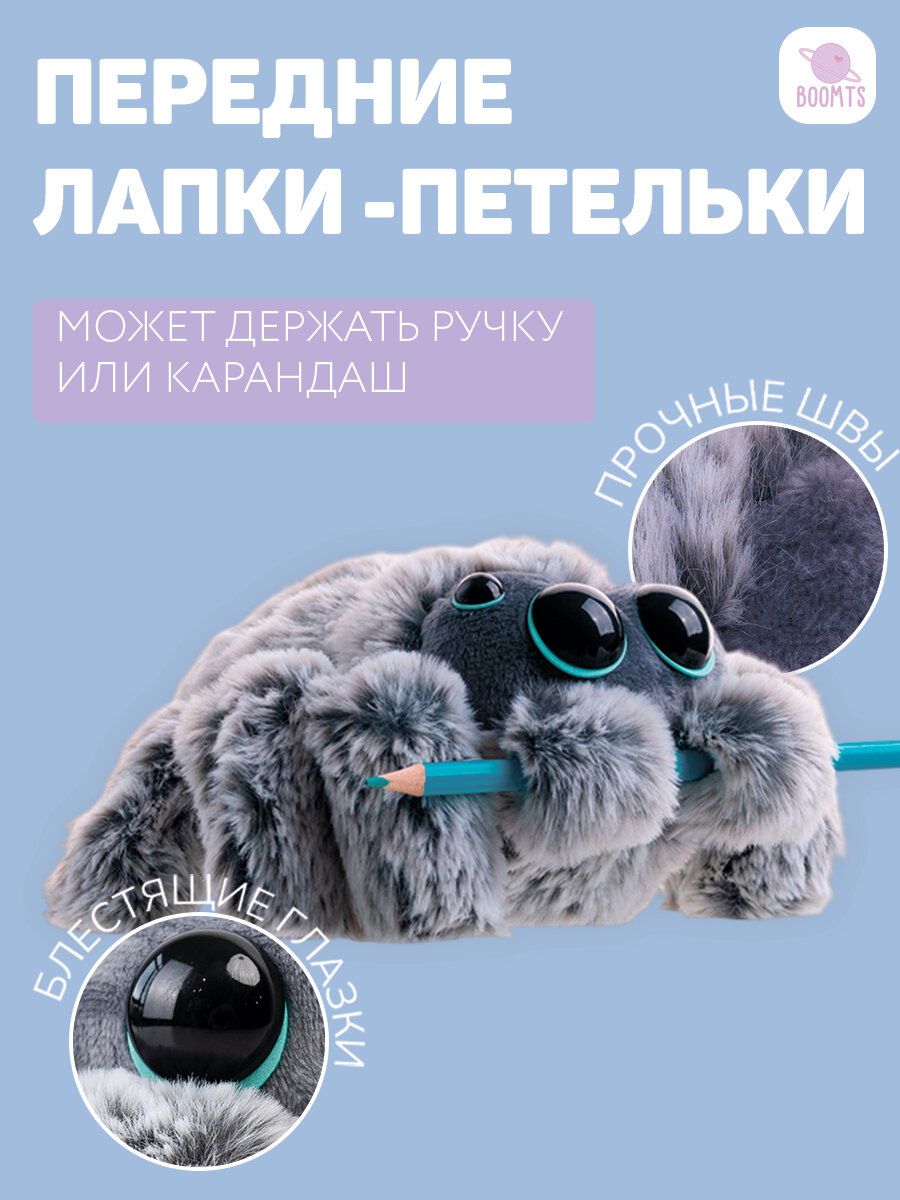 Мягкая игрушка паук BOOMTS "Павучок Йети" с мятными глазами в подарок девочке, мальчику информация: