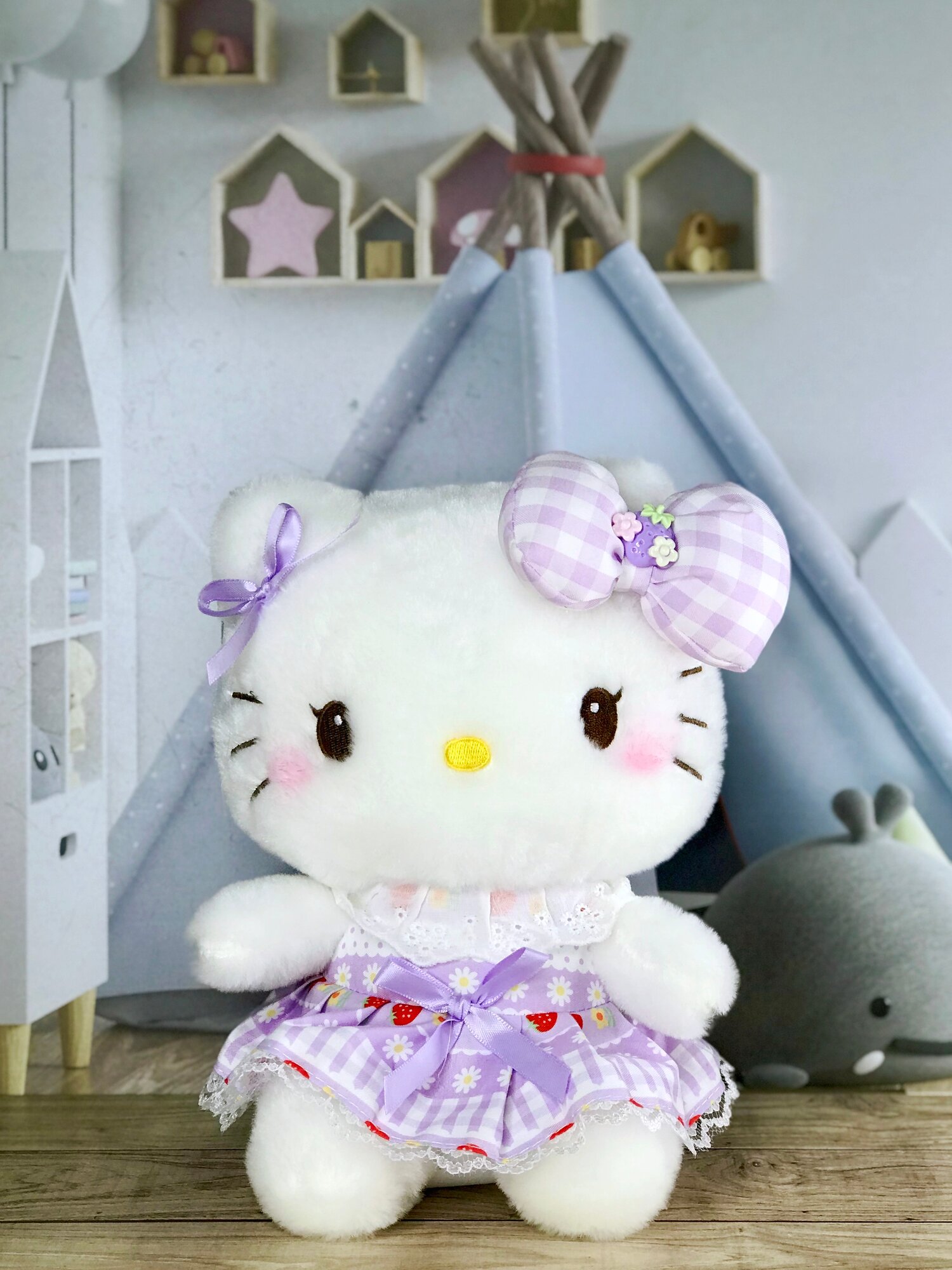 Отзывы на Мягкая игрушка Хэллоу Китти Hello Kitty с бантом 22 см светло-фиолетовая, белая