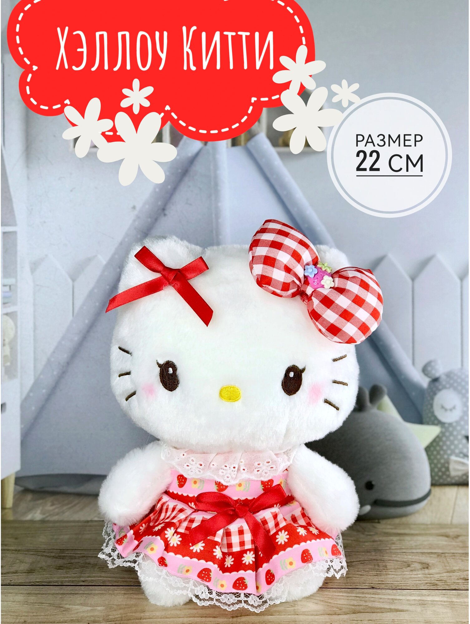 10 цен на Мягкая игрушка Хэллоу Китти Hello Kitty с бантом 22 см красный, белый