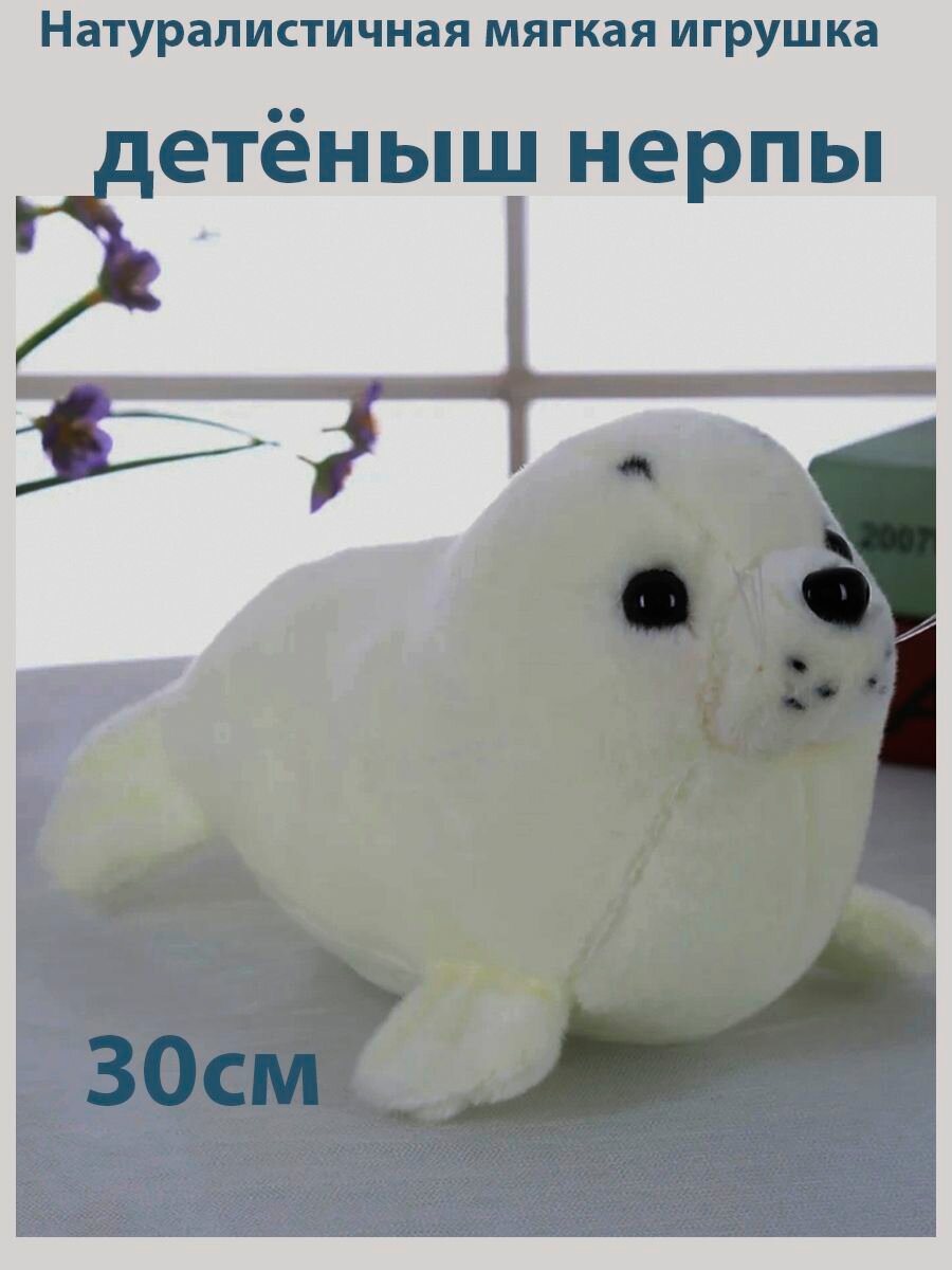 10 цен на Натуралистичная мягкая Игрушка - Детёныш нерпы. Цвет белый. Размер 30см.
