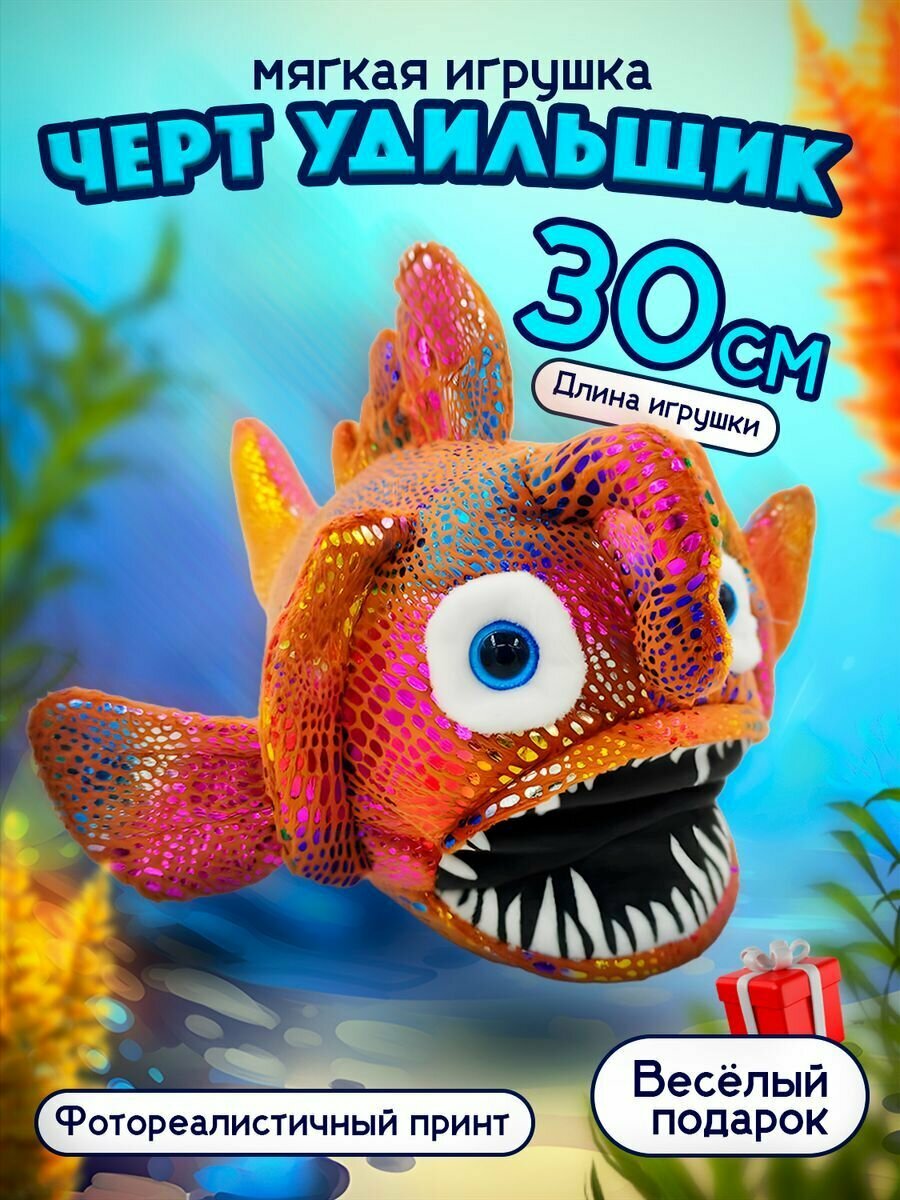 Мягкая игрушка Рыба Черт удильщик / 30 см / Плюшевый подарок для мальчика и девочки информация: