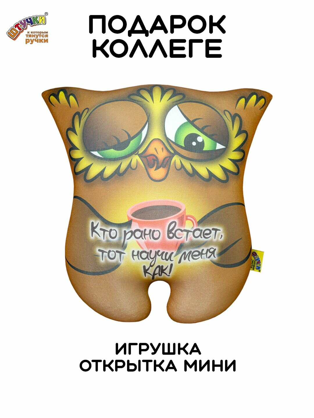 Штучки, к которым тянутся ручки/ Мягкая игрушка-открытка антистресс Совушка "Кто рано встаёт", 15х17 см информация: