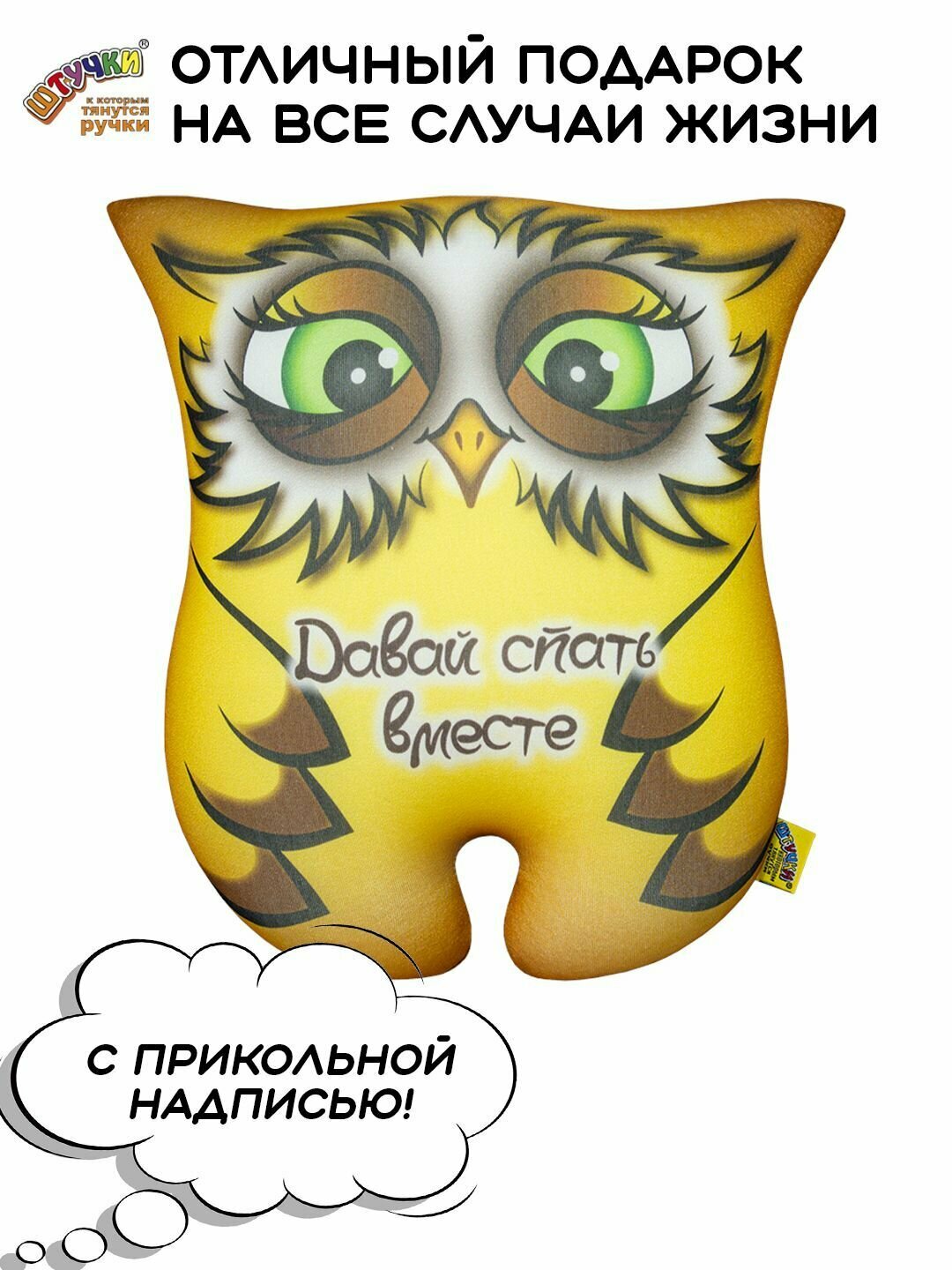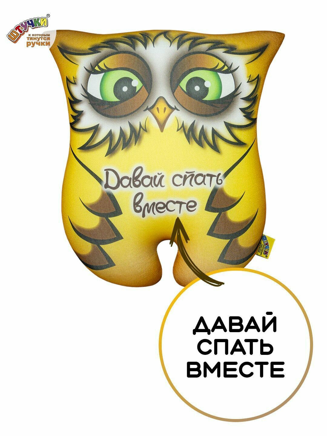 Штучки, к которым тянутся ручки/ Мягкая игрушка-открытка антистресс Совушка "НаСпать", 26х26 см 666 ₽