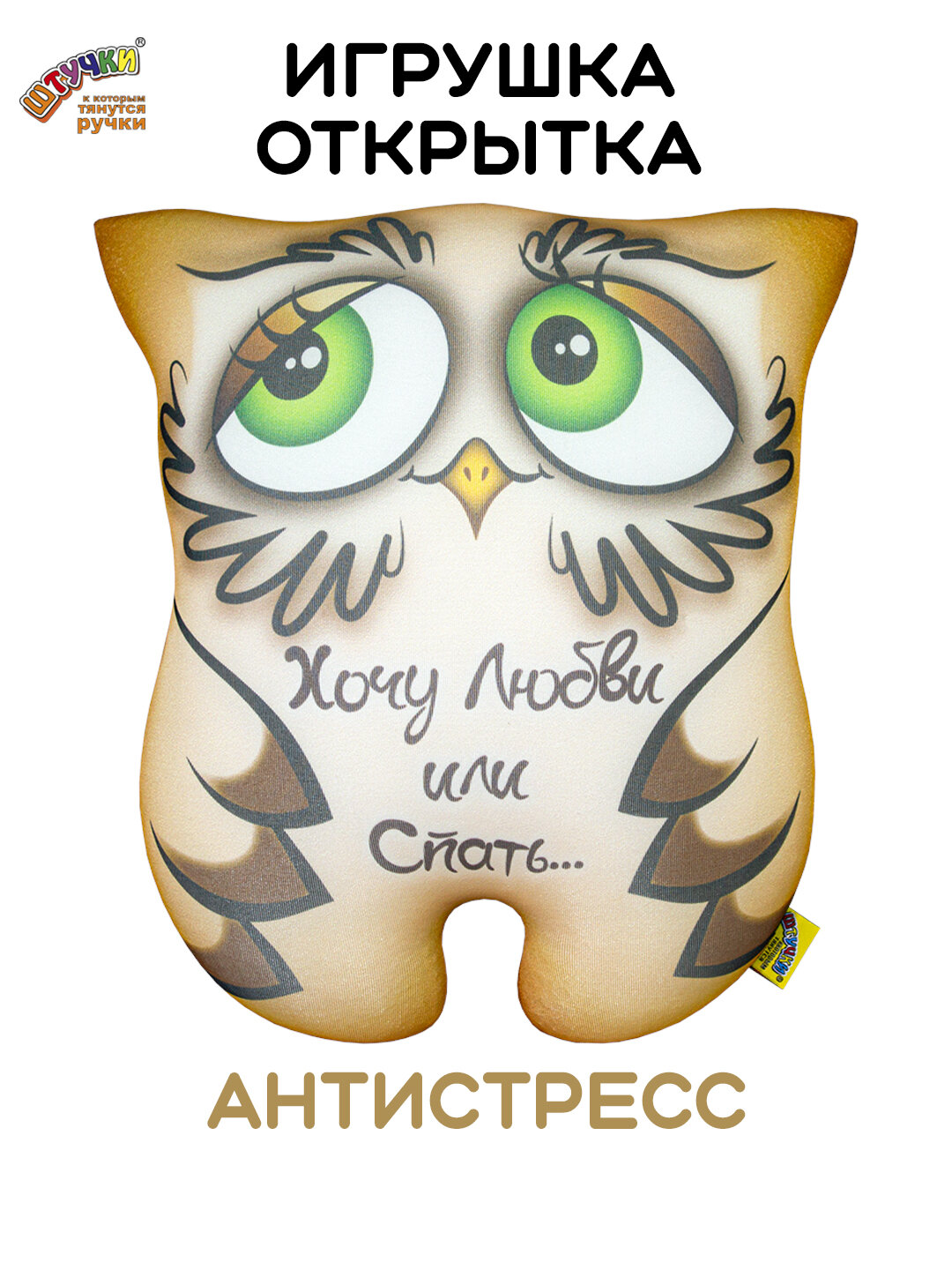 Штучки, к которым тянутся ручки/ Мягкая игрушка-открытка антистресс Совушка "Хочу любви", 26х26 см информация: