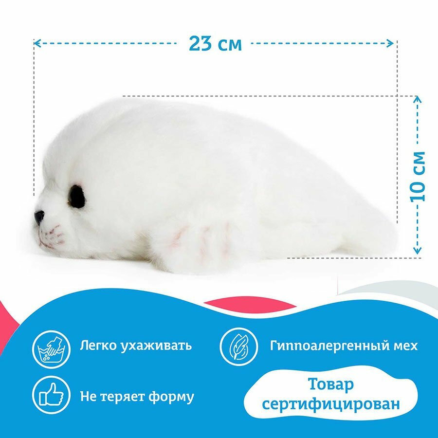 Мягкая игрушка Mimis "Нерпа" 23см, пушистая обнимашка, байкальская нерпа информация: