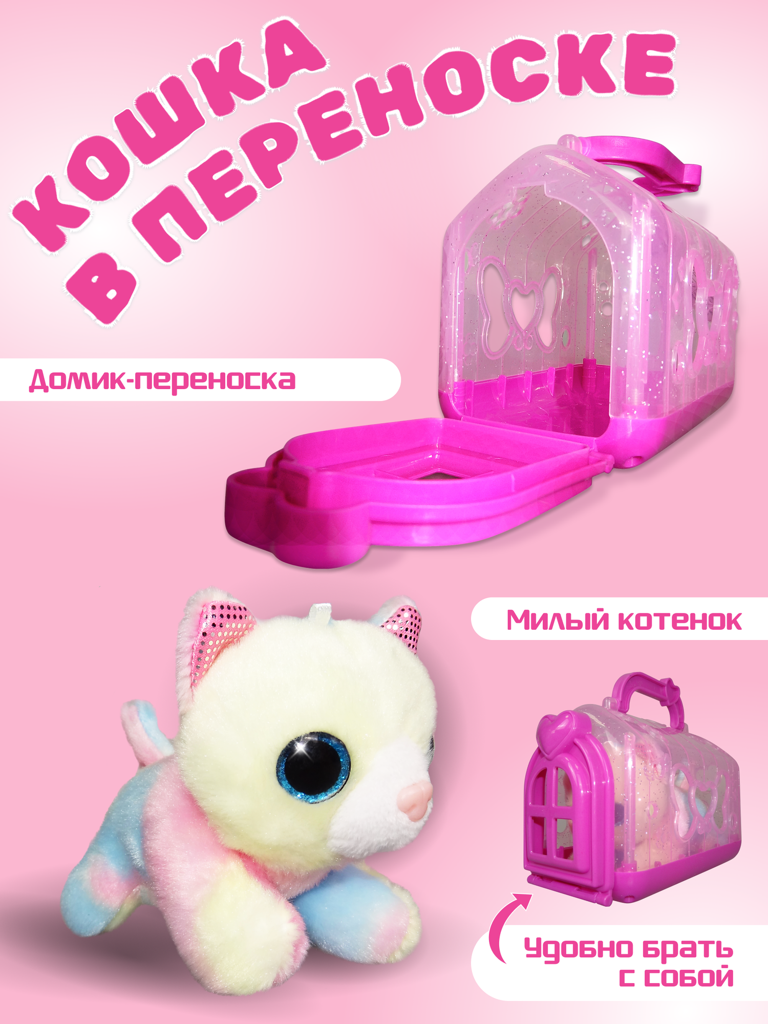 10 цен на Мягкая плюшевая игрушка маленькая кошка 12 см в переноске 15 х 8,5 х 11 см для девочек