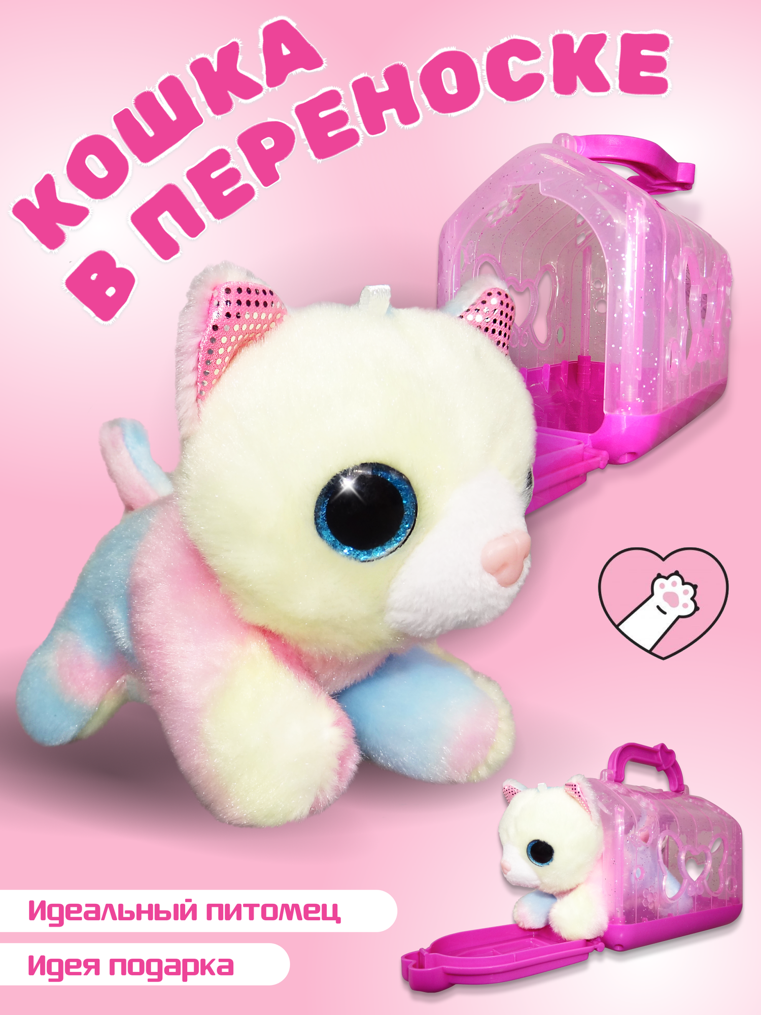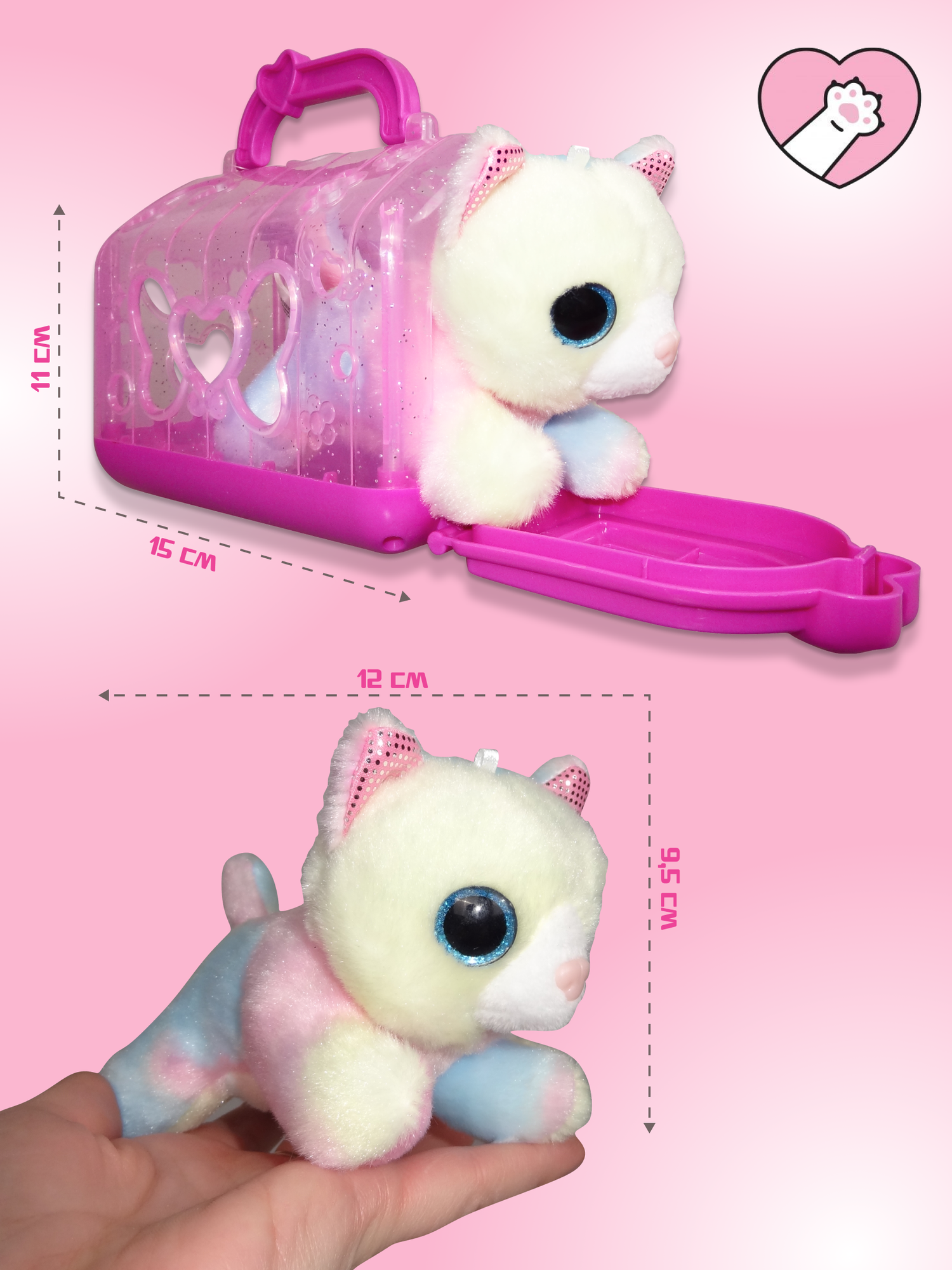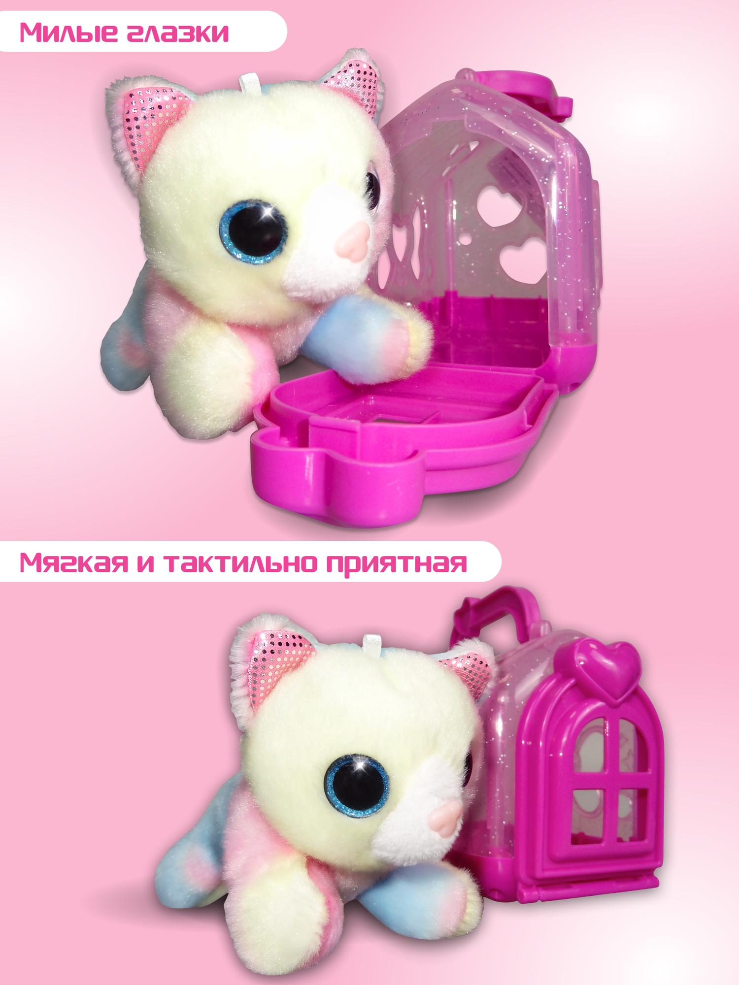 Мягкая плюшевая игрушка маленькая кошка 12 см в переноске 15 х 8,5 х 11 см для девочек