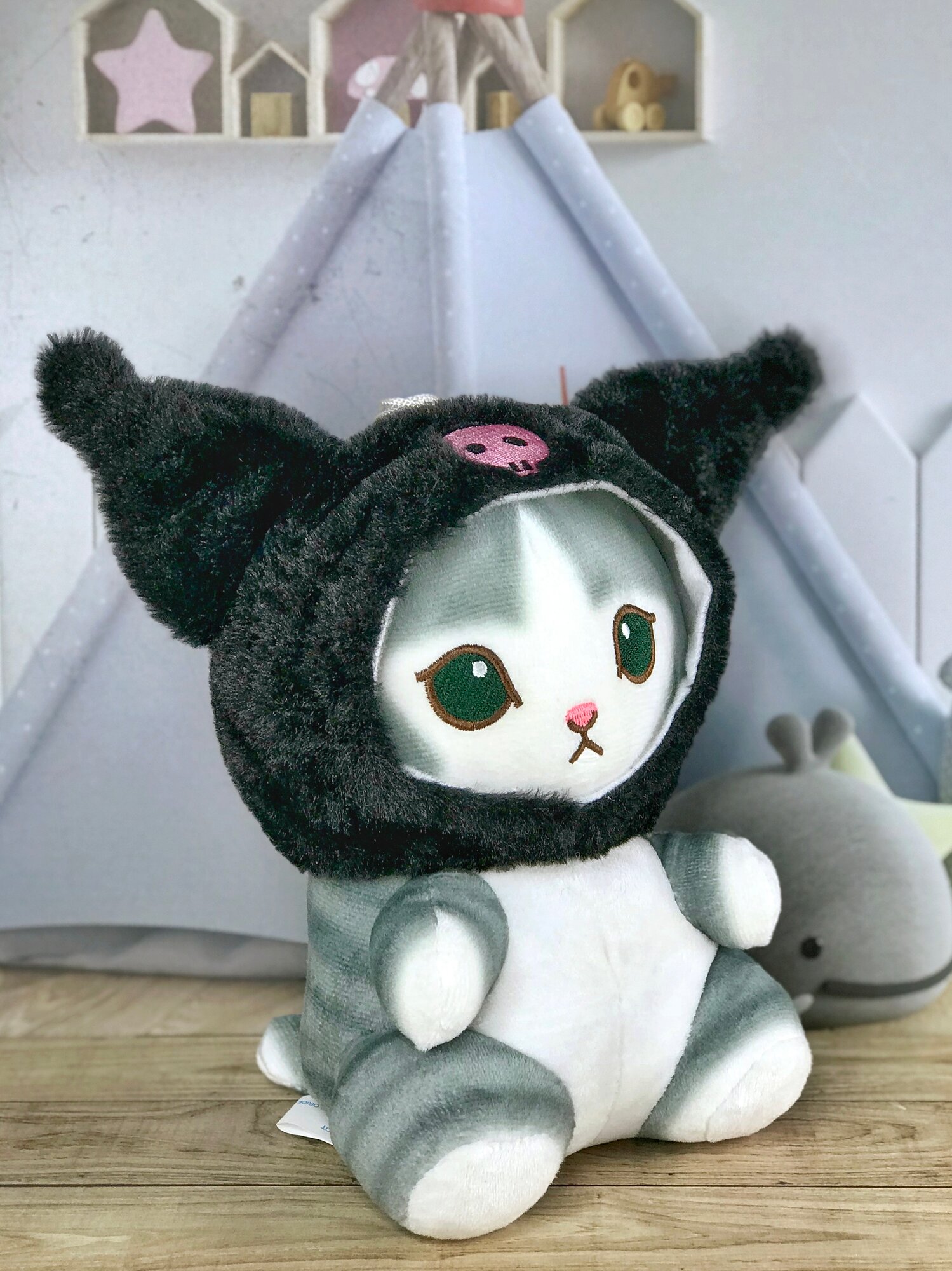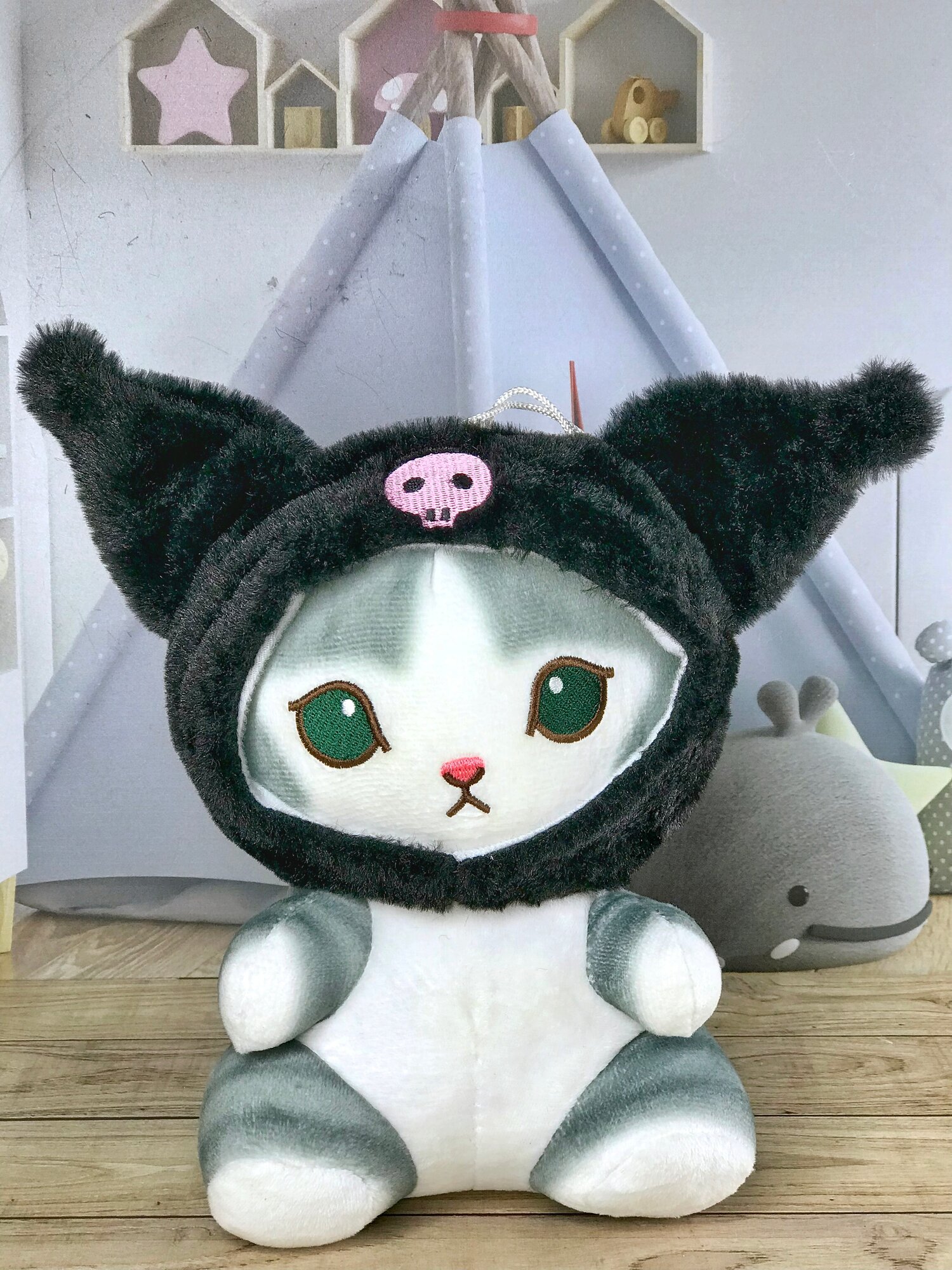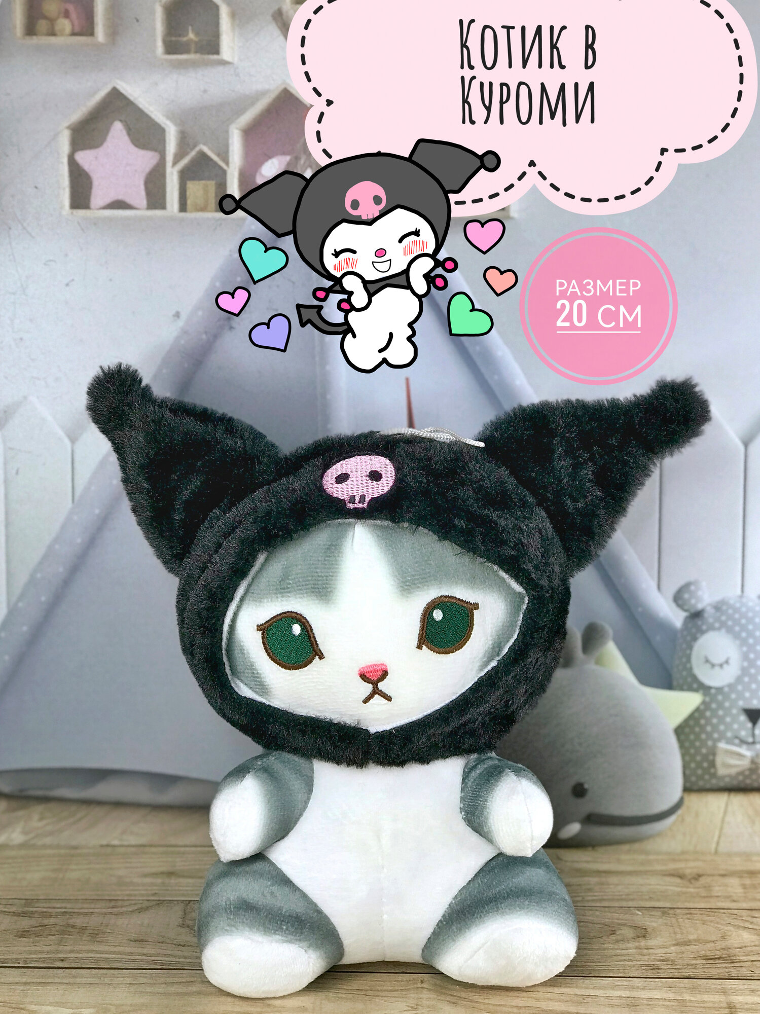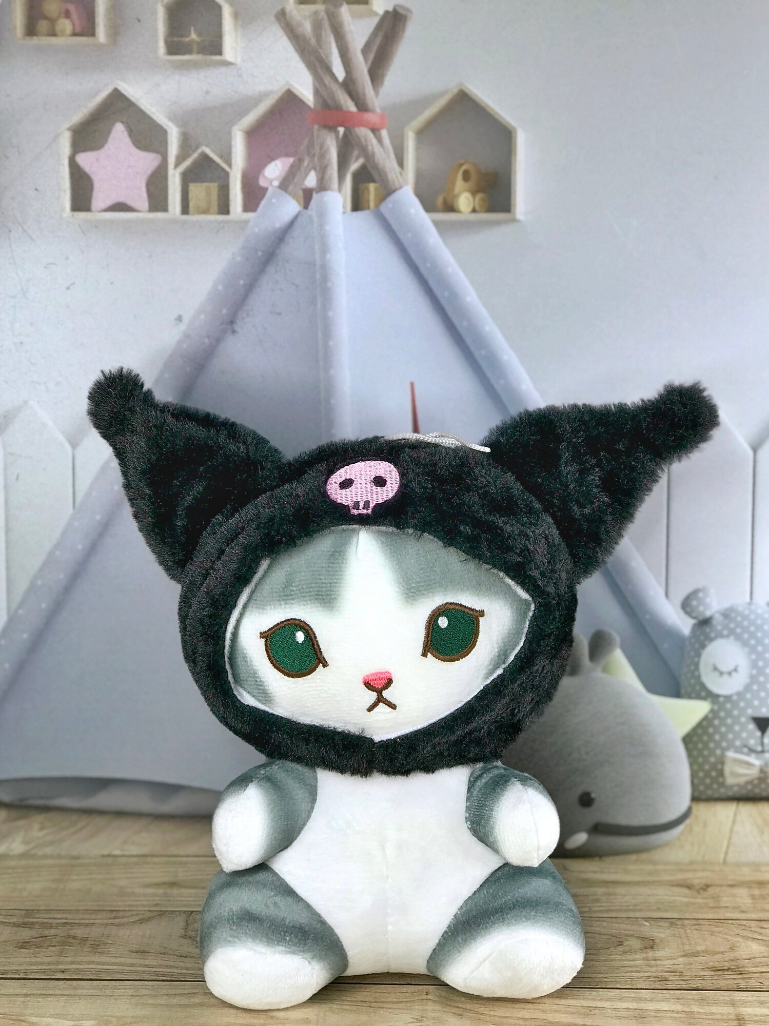 Отзывы на Мягкая игрушка Кот, Котик серый в шапочке Куроми (Kuromi) 20 см