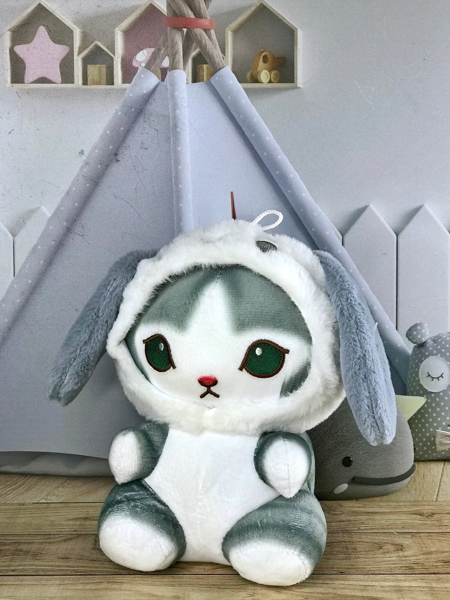 Мягкая игрушка Кот, Котик серый в шапочке Куроми (Kuromi) 20 см 580 ₽