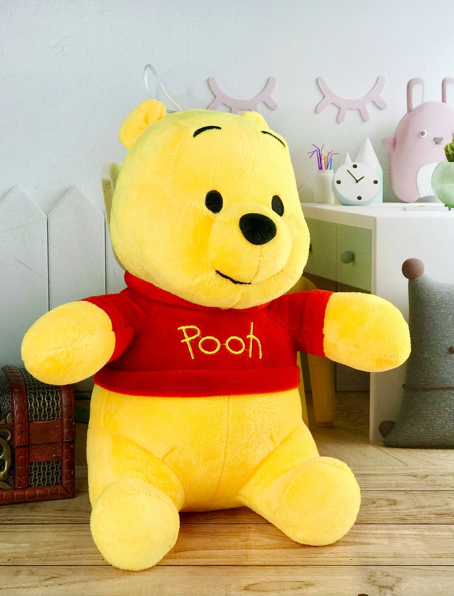Мягкая игрушка Мишка Винни Пух в толстовке 22 см желто-красный 725 ₽