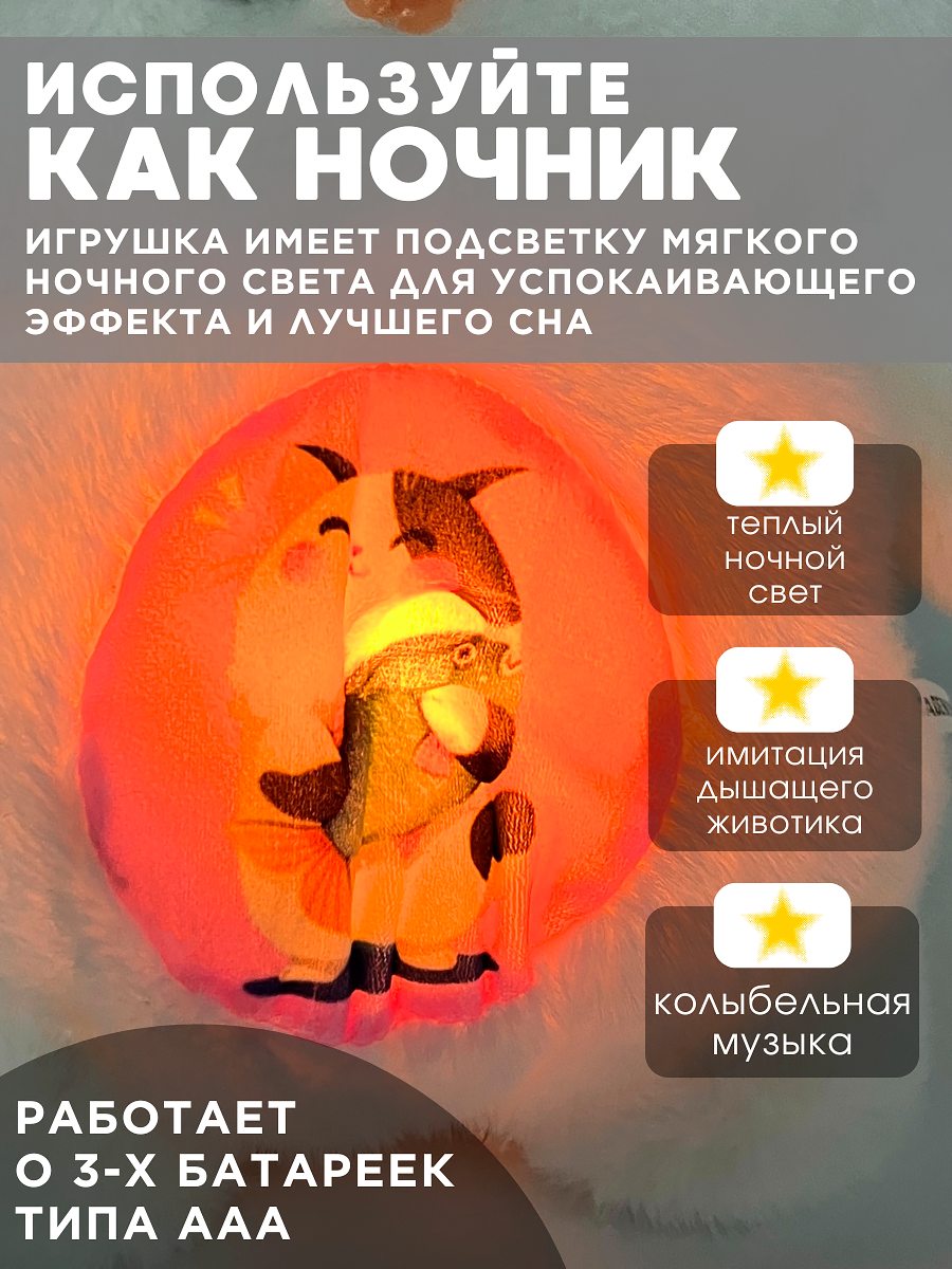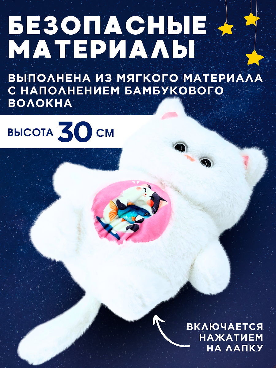 Игрушка для сна дышащая плюшевая, котик белый информация: