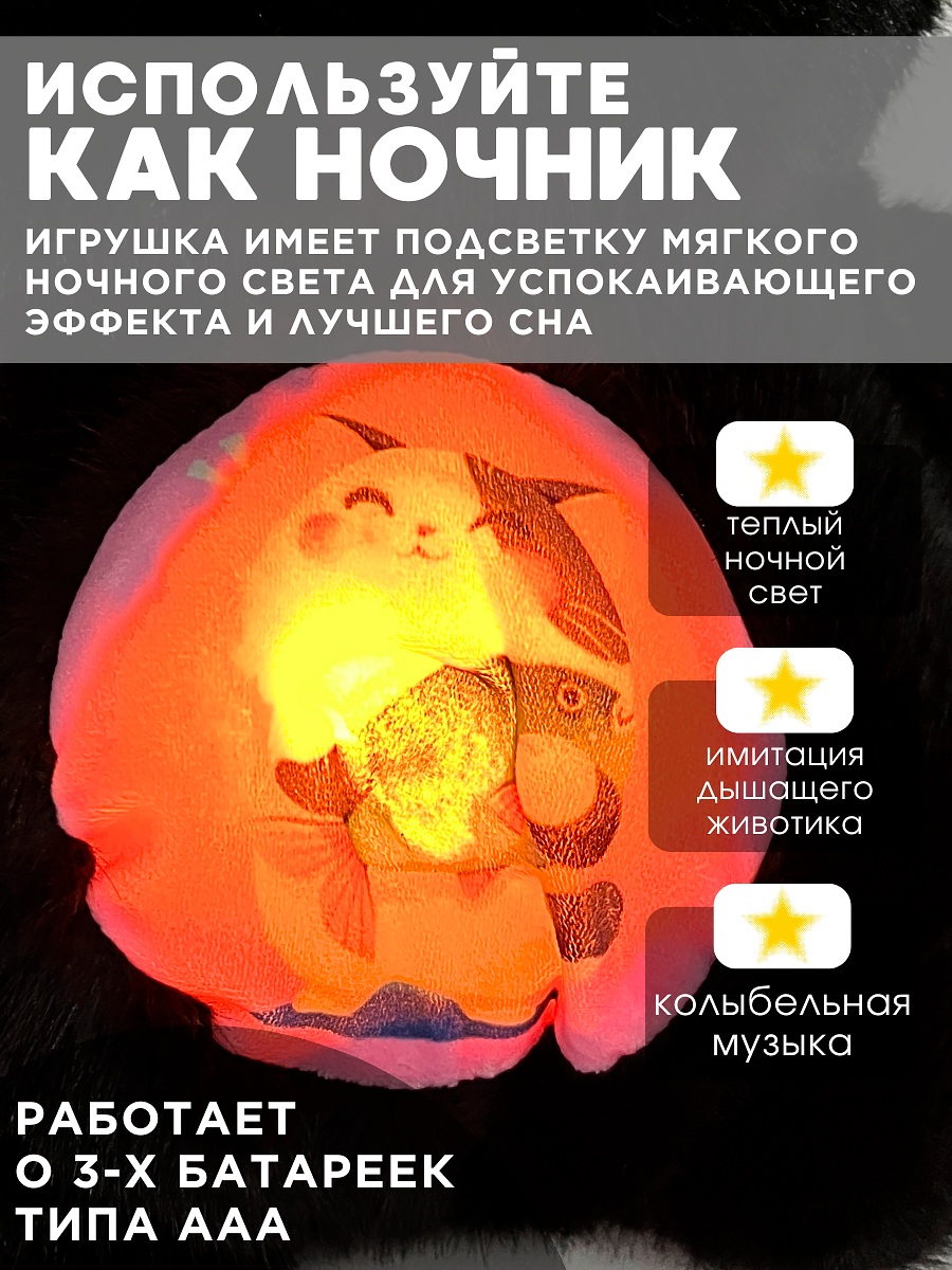10 цен на Игрушка для сна дышащая плюшевая, котик черный
