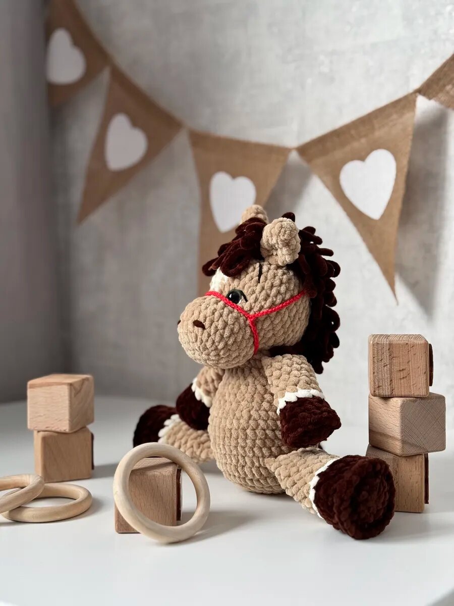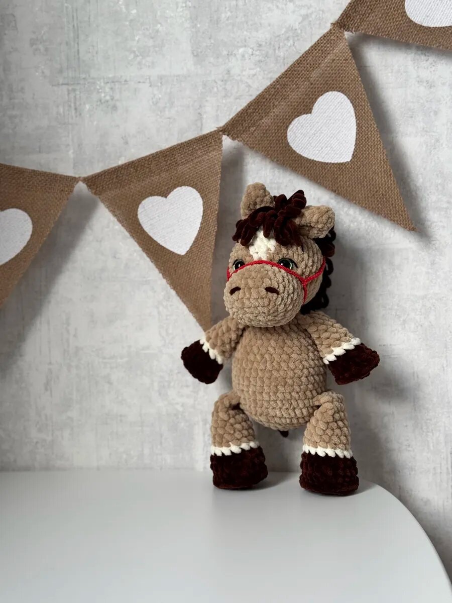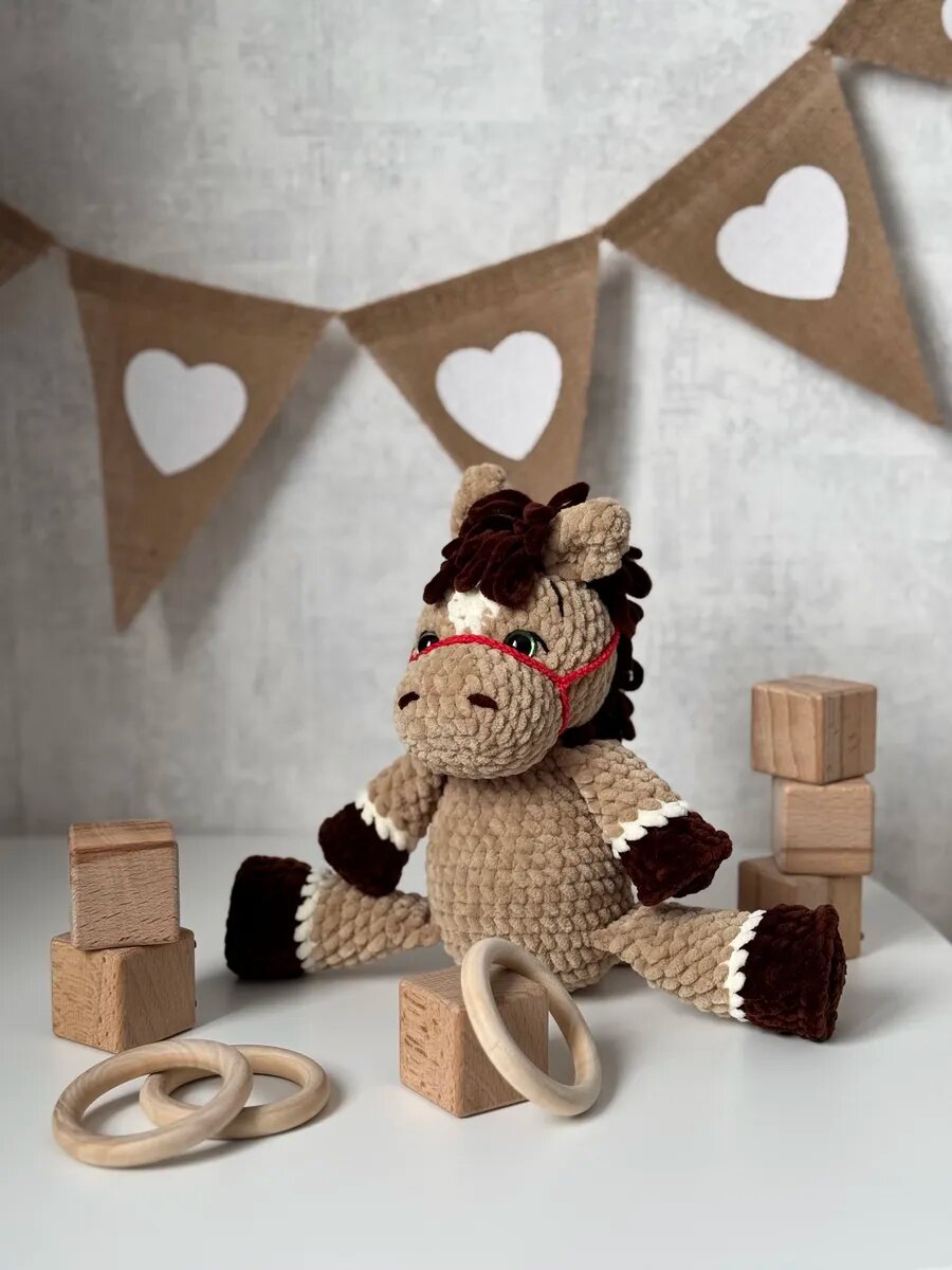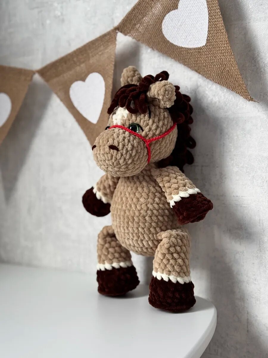Мягкая игрушка IrinaToys "Лошадка", вязаная, плюшевая, ручная работа, 25см, коричневый информация: